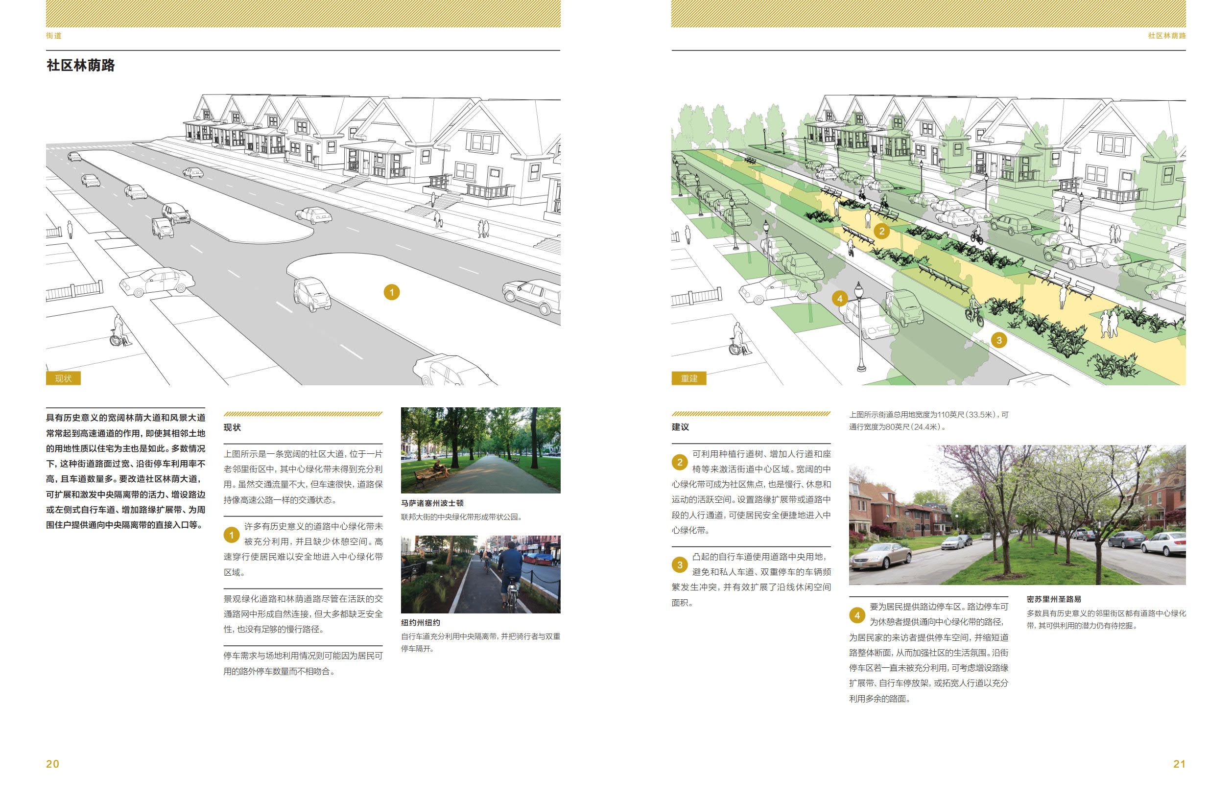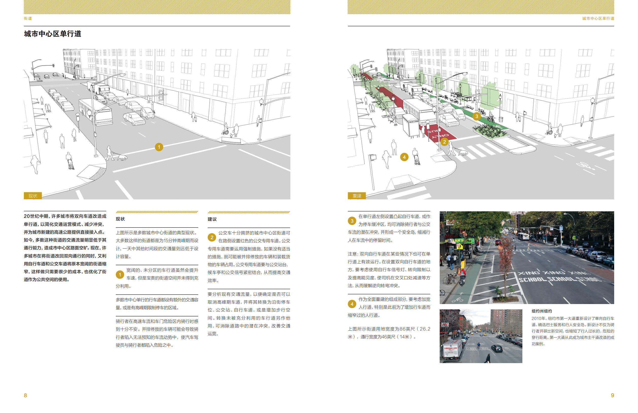 3. 《城市街道设计指南》侧重于城市街道和公共空间的设计。强调城市街道设计是一种独特的实践,具有自己的一套设计目标 、参数和工具,以围绕城市环境的特殊特征展开设计。