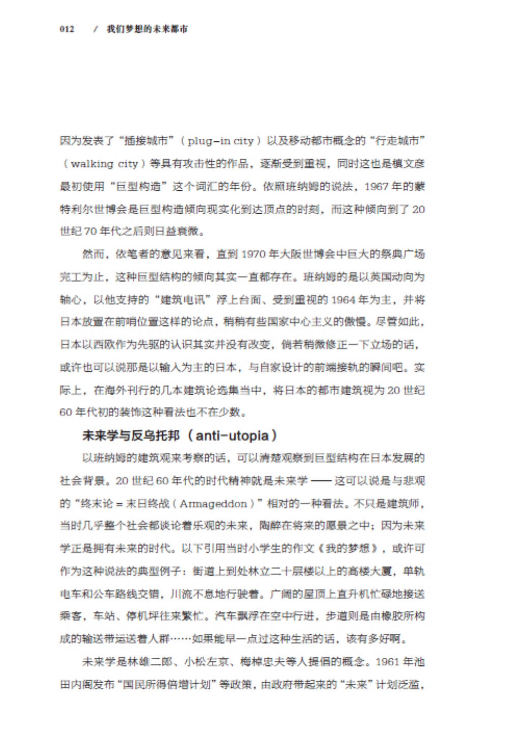 本书由建筑评论家五十岚太郎与建筑专门记者矶达雄共同撰写,两人分别从日本战后至今的建筑家的思维、现实中曾经提出过的未来都市计划构想,以及小说、电影中虚构的未来都市两个方面入手,旁征博引地谈论那些与时代紧紧相扣的未来的梦,也从中看见此刻指尖所指向的可能未来。