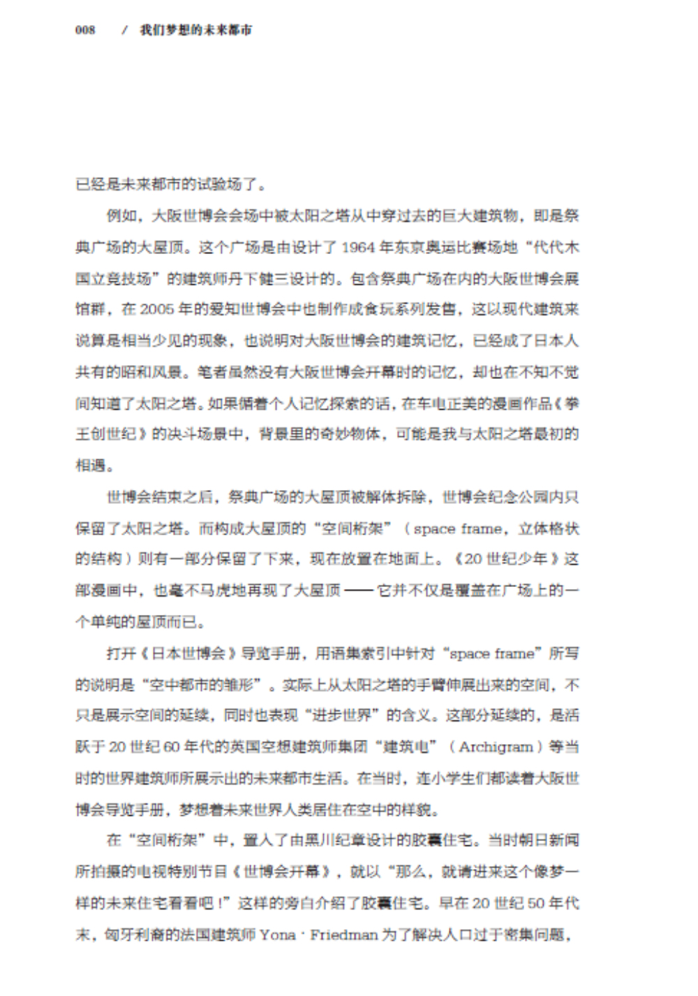 建筑史学家五十岚太郎携手矶达雄,从建筑与科幻两方面来谈述这些曾经被畅想过的未来都市,旁征博引谈论那些与时代紧紧相扣的未来的梦,也从中看见此刻指尖所指向的可能未来。