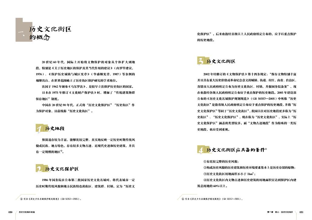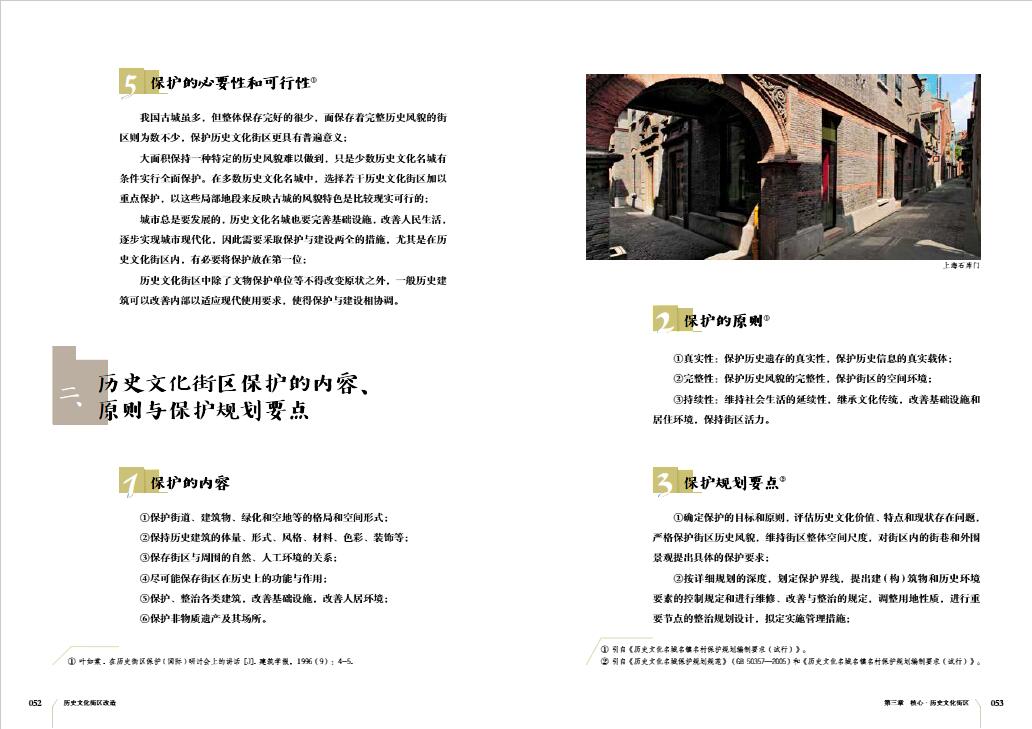 (1)完善而丰富的理论:让读者了解相关领域的规范及需要注意的事项,为改造设计提供有据可依的立足点。对基本概念的详细解释和通俗易懂的分析文字更易于读者对历史文化街区的相关知识进行理解。