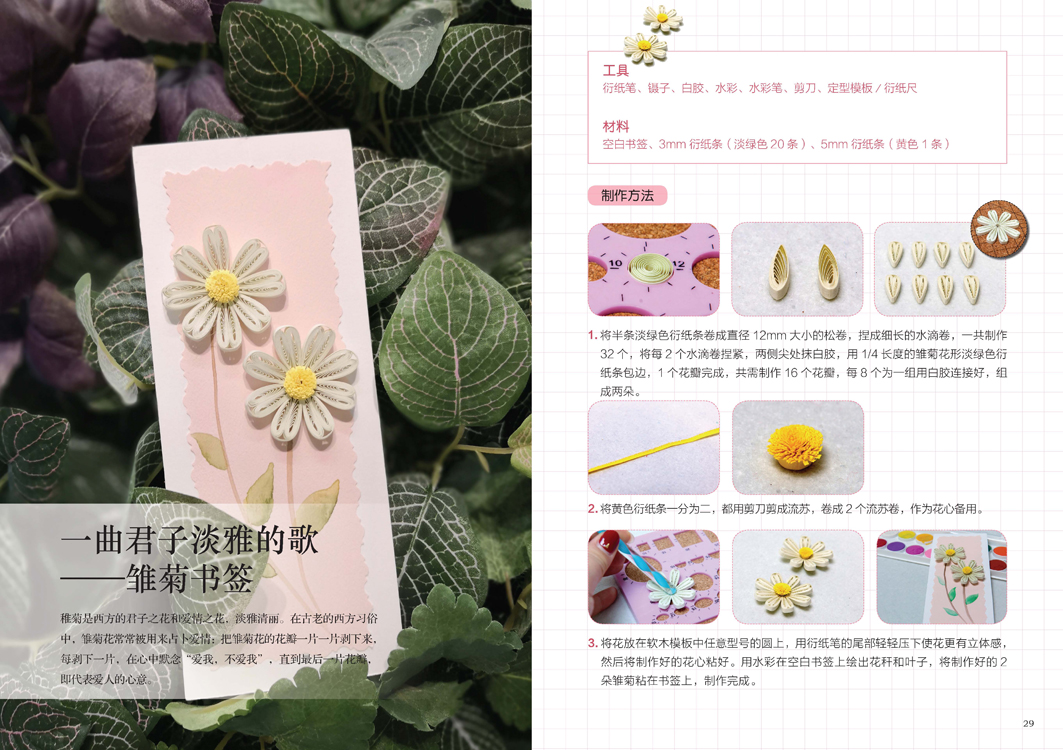 无论是零经验的初学者还是衍纸达人,都能跟随作者创造出带有自己风格的衍纸作品。通过多彩的衍纸做出来的衍纸作品饱含心意、温暖人心,这些做好的衍纸作品不仅可以自用,也可以作为礼物送给自己的家人或朋友。