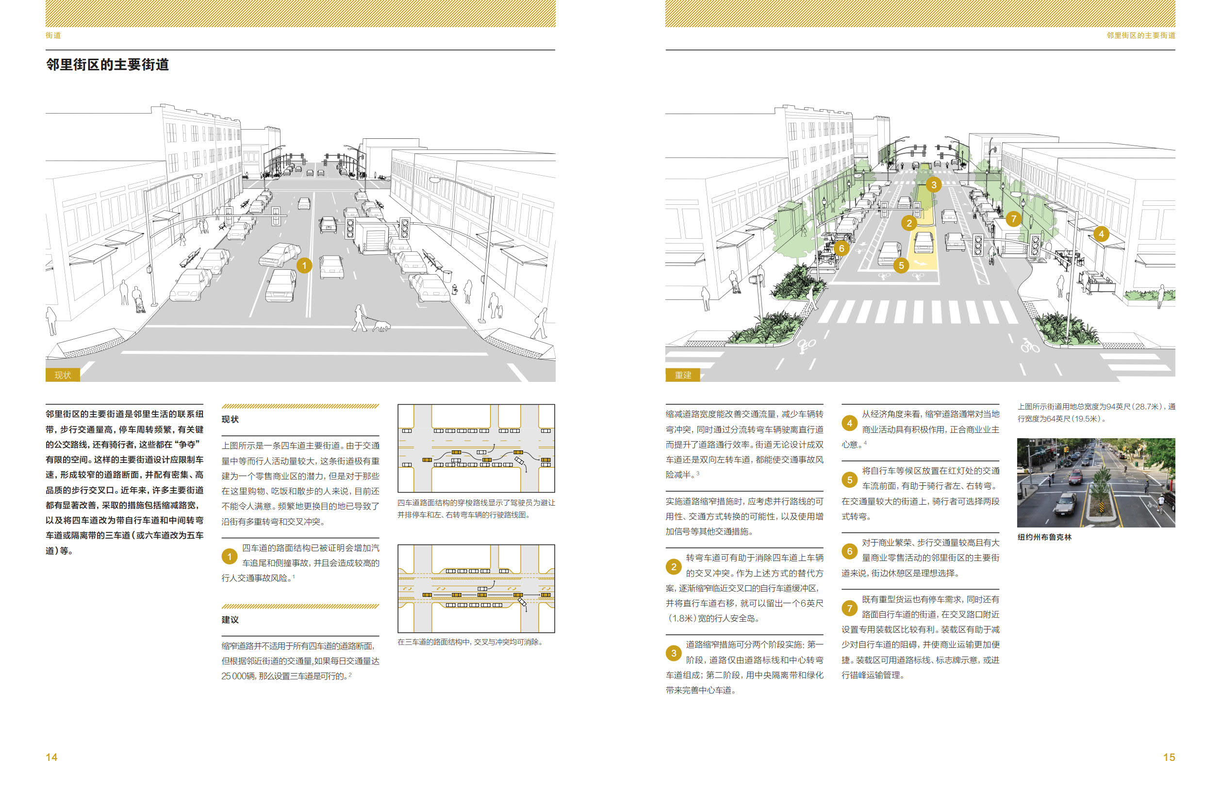 《城市街道设计指南》概述了城市街道设计的各种原则,使街道安全而富有魅力,吸引人们在城市环境中步行、购物、停留以及驾驶,这些原则旨在创造真正为人所用的城市街道空间。