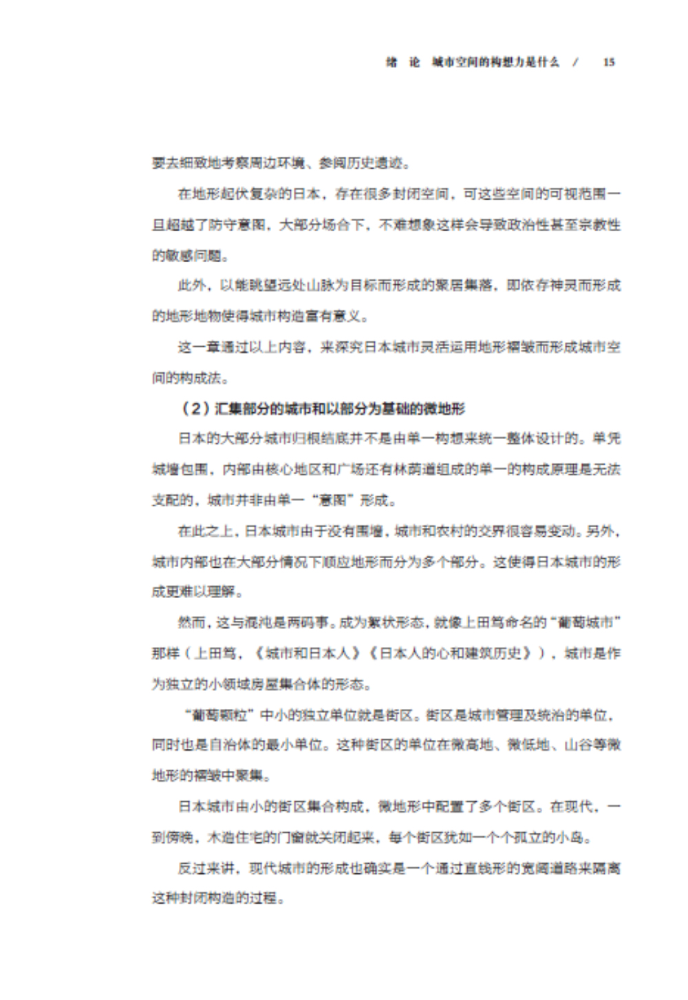 本书是由东京大学教授西村幸夫率领的东京大学都市设计研究室的中岛直人、永濑节治。中岛伸、野原卓、窪田亚矢、阿部大辅6位教授,耗时10年总结出来的关于城市空间规划和设计理念的图书。通过“规划大地”“ 规划街道”“ 依存于细节”“统一整体”“推动万物”“印刻时间印记”六个视角详细解读都市空间的构想力,为现代城市规划师提供借鉴。