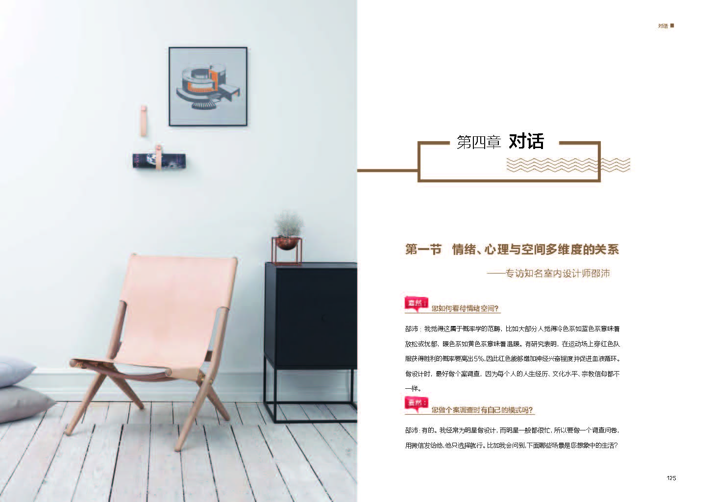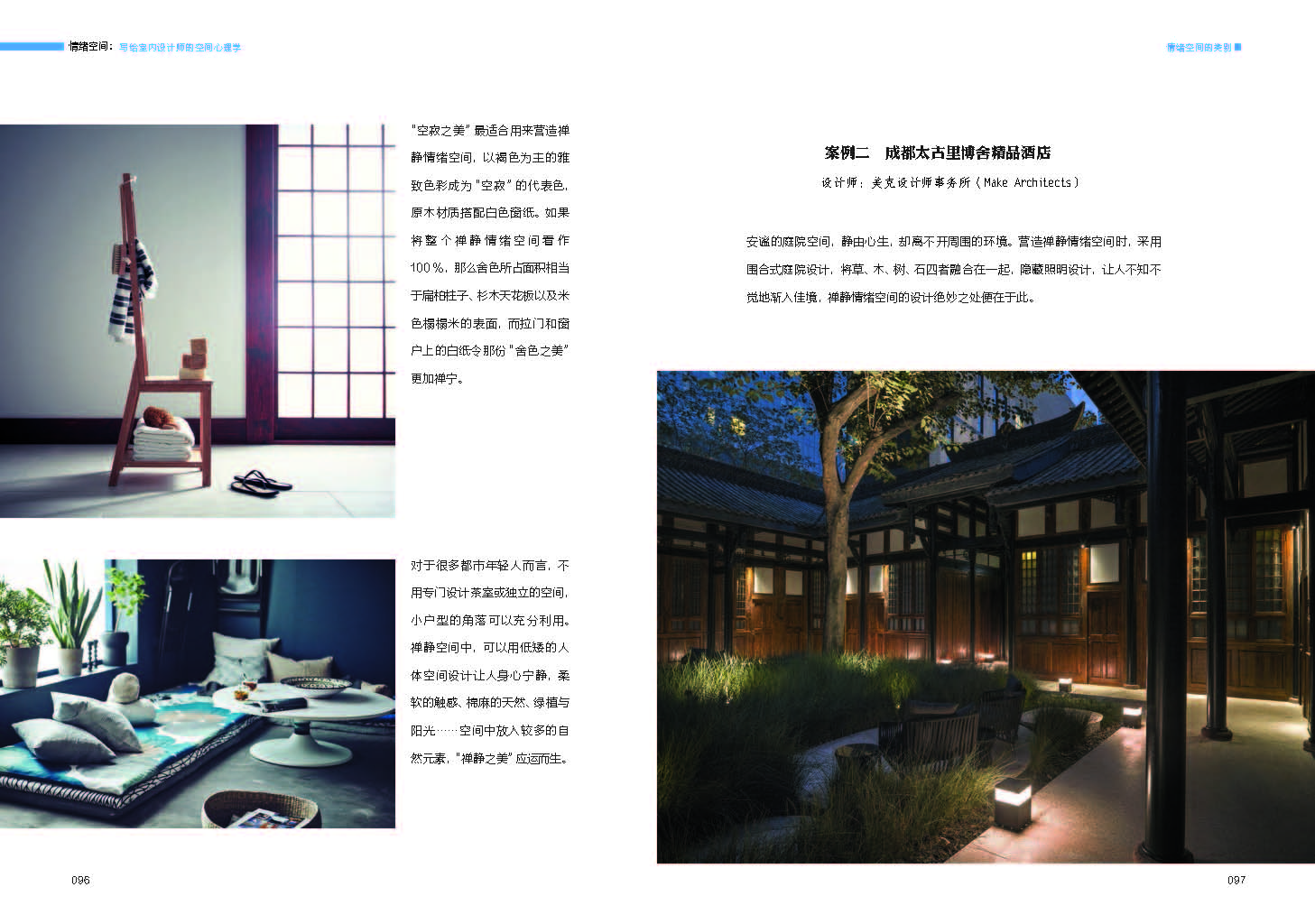 而言,设计师应该具备心理学相关专业的基础素养,以便很好地掌握人的心理,打造积极、良好的疗愈性空间。越来越多的设计师开始关注情绪空间,即条件反射性地规避危险,趋吉避凶,评估那些具有重要意义的“刺激物”,这必然促使情绪空间相关研究的诞生。