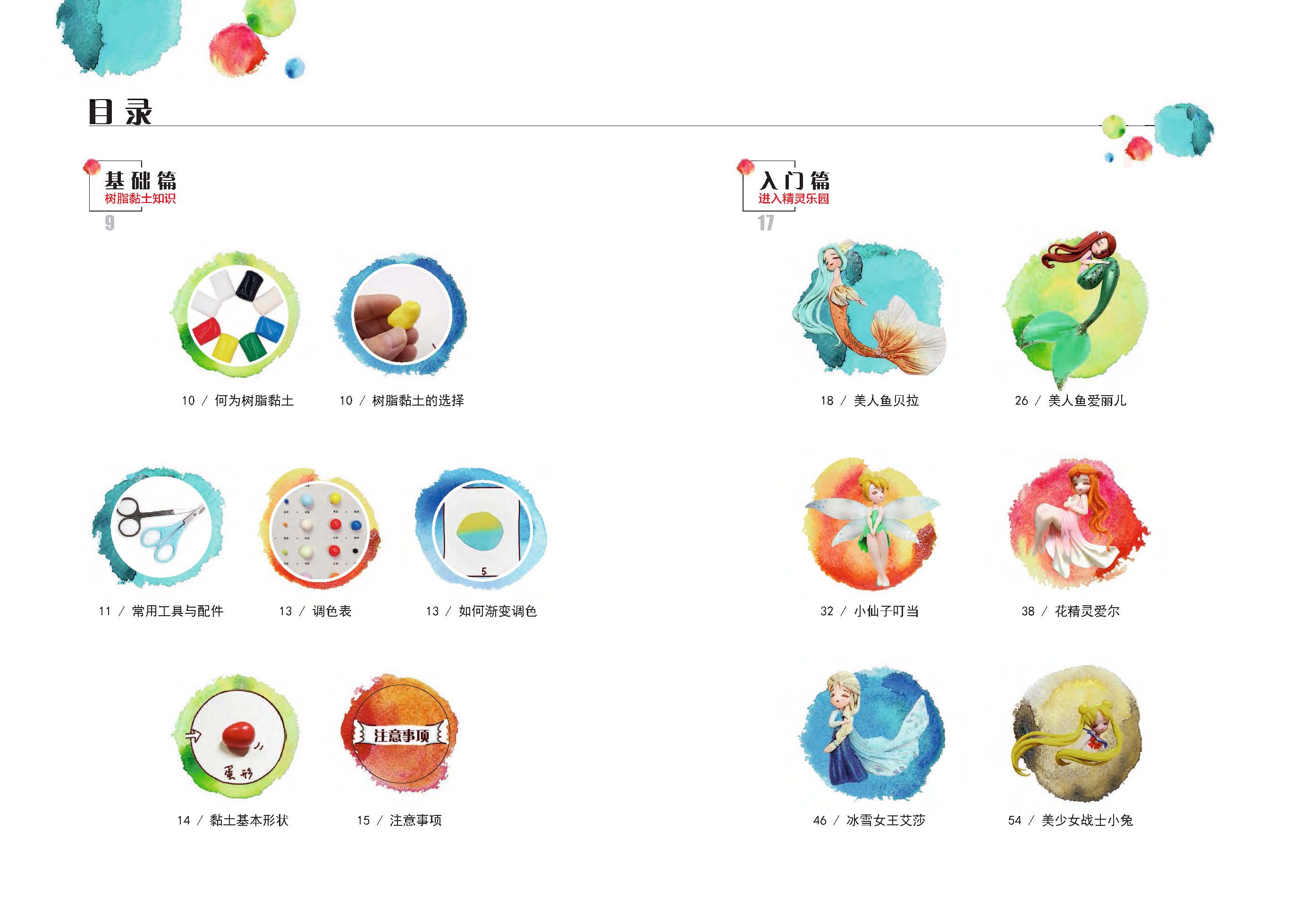 这是一本全面讲解树脂黏土美人鱼、花仙子等小精灵饰品制作的指导图书,书中精选18个案例,从入门、提升到延展循序渐进地讲解这些小精灵的制作全过程,主题上涉及美人鱼、小仙子和经典卡通动漫人物,冰雪女王艾莎、美少女战士小兔、爱丽丝等。结合树脂黏土的基本知识和滴胶、结绳等手工技法,为读者提供丰富有趣的手工学习。