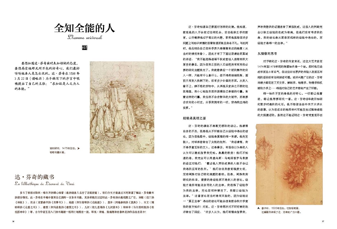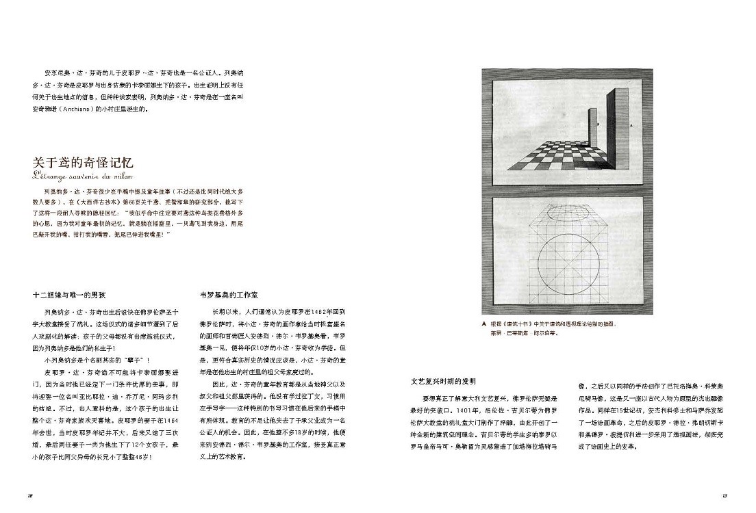 书中简要介绍了达·芬奇的生平,作者通过对其成长故事的叙述使读者对达·芬奇有了更深刻的了解。而本书对达·芬奇的思想和成就的描述,更是引人入胜。读者可以从本书中了解达·芬奇在面对人类生活的世界和无垠的浩瀚宇宙时表现出的极富远见的直觉和超越时代的天赋。他那颠覆艺术史的惊人直觉,他的梦想和独具魅力的性格,以及穿越意大利前往法国的辗转旅程,这一切至今仍然令一代又一代读者着迷……