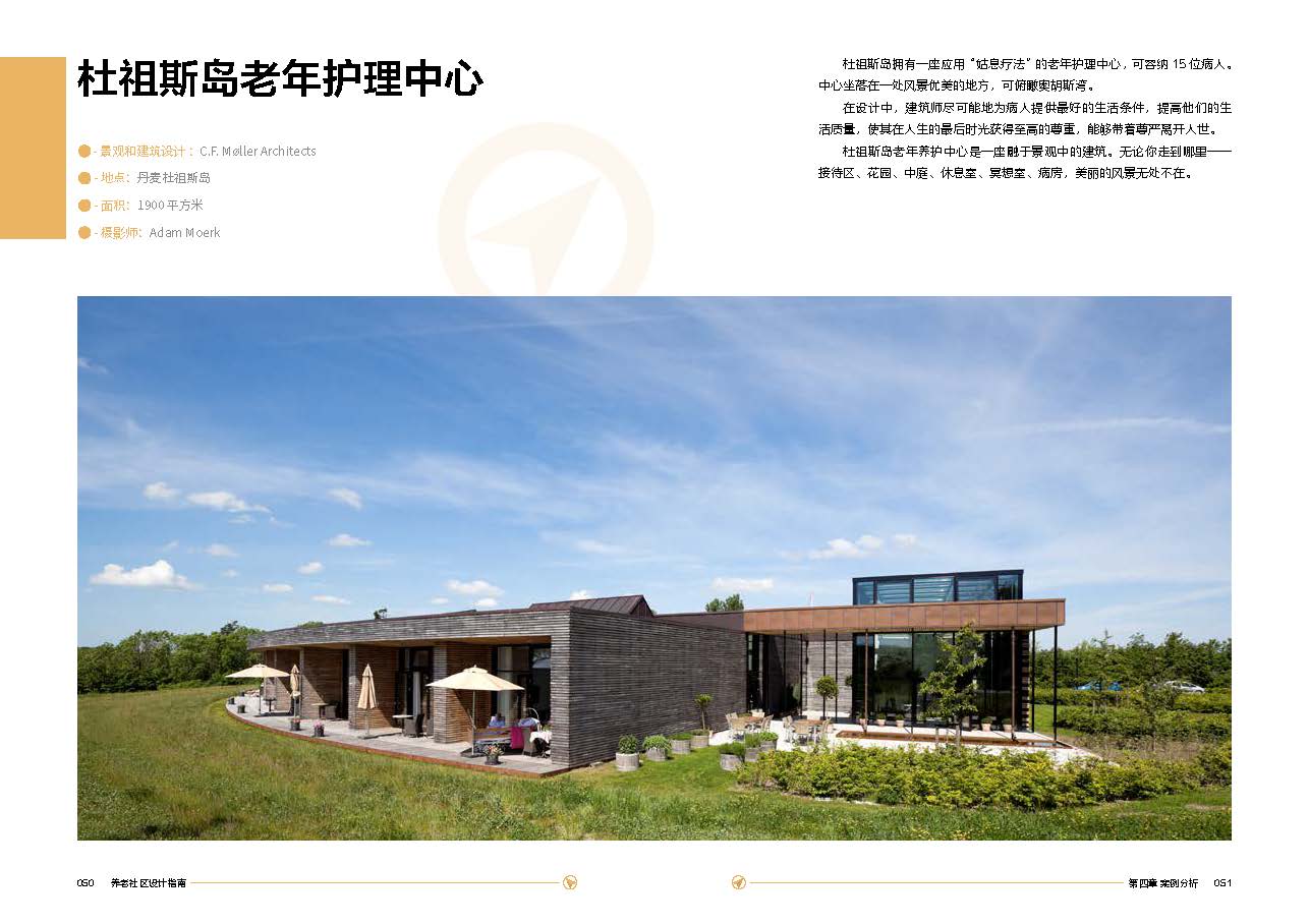从世界范围看,老年人住宅大致分为社区式照顾老人住宅、机构式照顾老人住宅和居家式照顾老人住宅。社区式照顾老人住宅也称呼为“养老社区”,它主要由政府和非政府组织以及其他机构共同为老年人设立,是集合了居住、餐饮、医疗、娱乐、文化、学习等各种功能的养老场所。