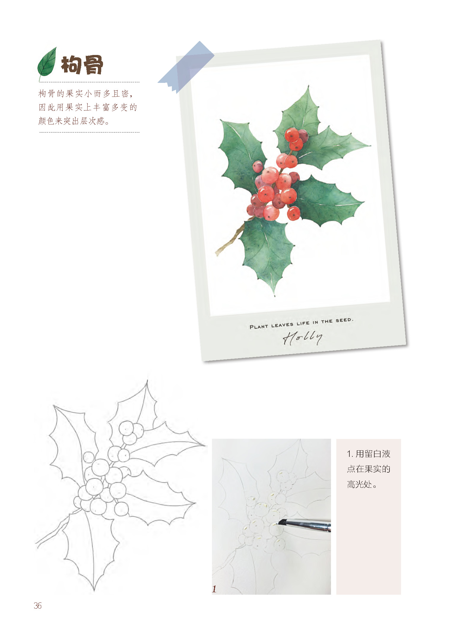 1.水彩画是一种特殊的艺术形式,本书作者以北欧风花草作为切入点,分享了水彩画中画植物的颜色、构图、光感以及工具和基本技法的学习,图解直观,简单易懂。