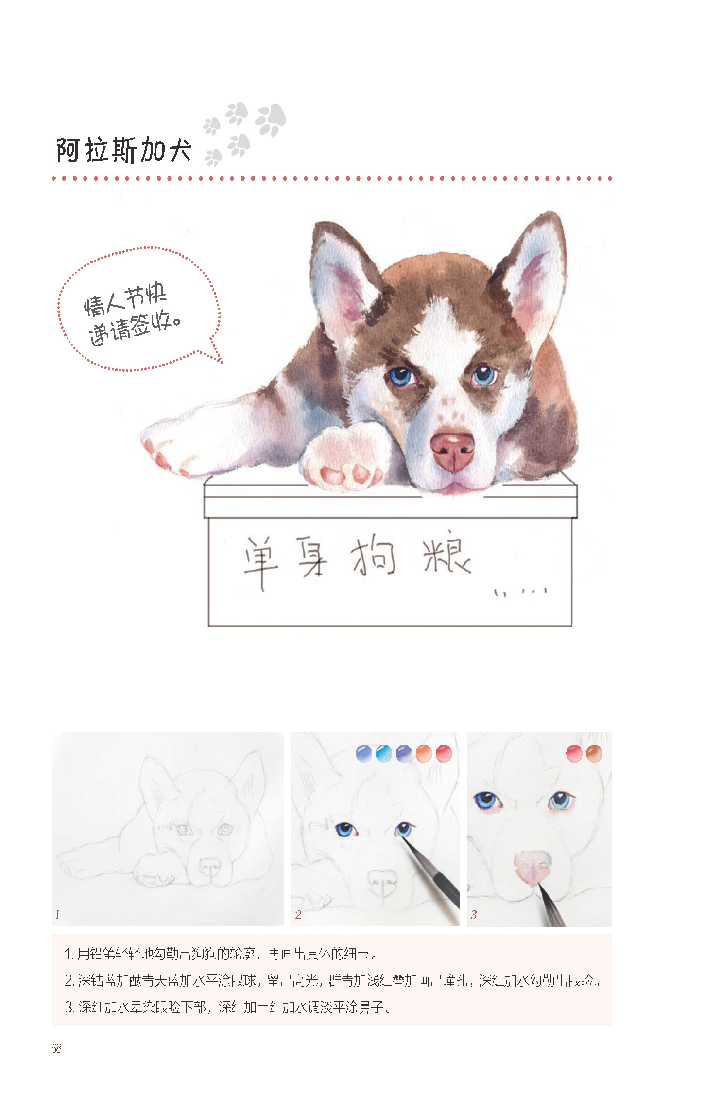 1.以萌宠作为切入点,展现了水彩画中对萌宠的颜色、布局、质感以及工具和基本技法的学习,图解直观,简单易懂。