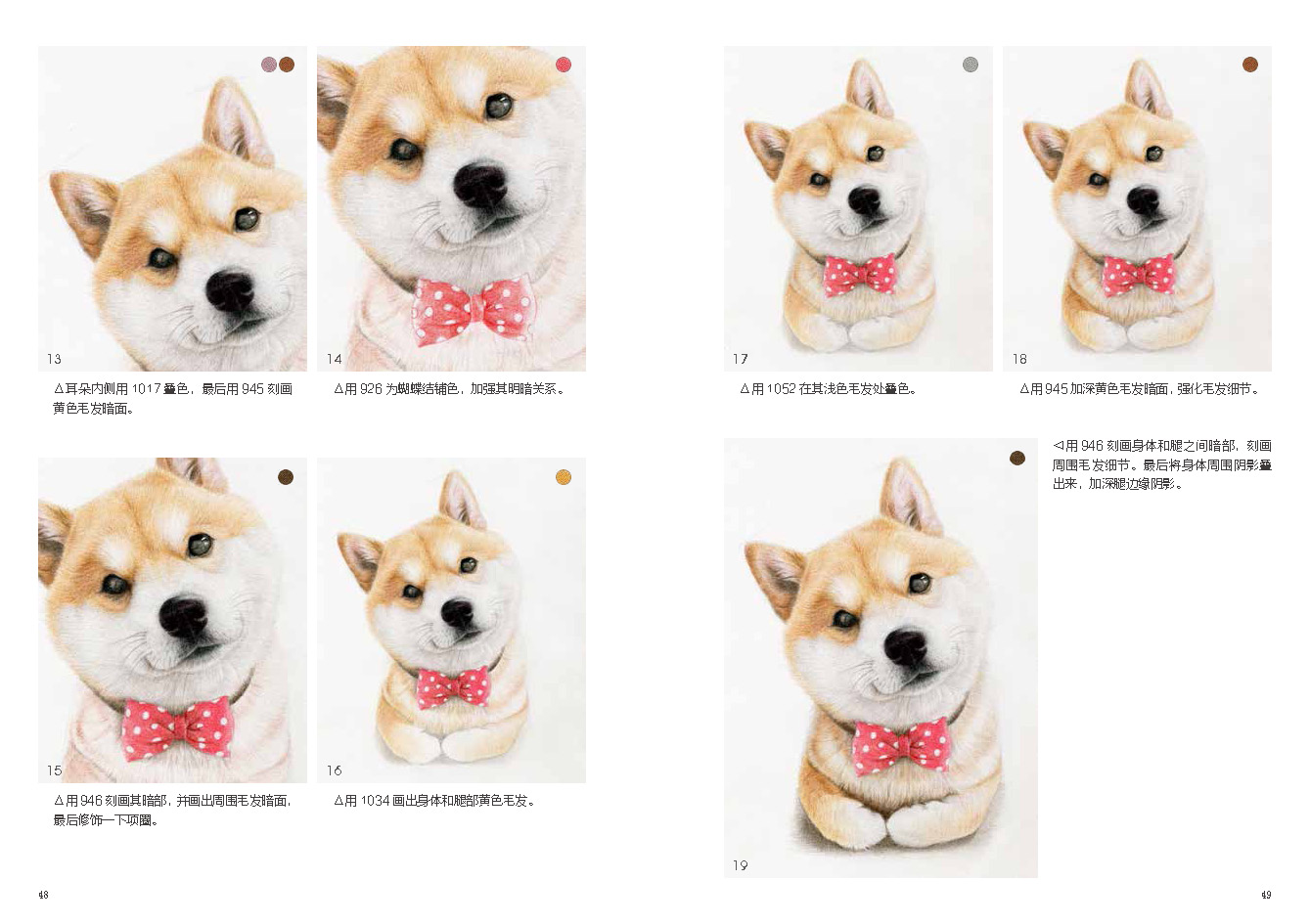 4.48种猫狗的案例合集,包含基础知识+局部讲解+完整教程,非常适合爱好彩铅画、学习彩铅画的读者。