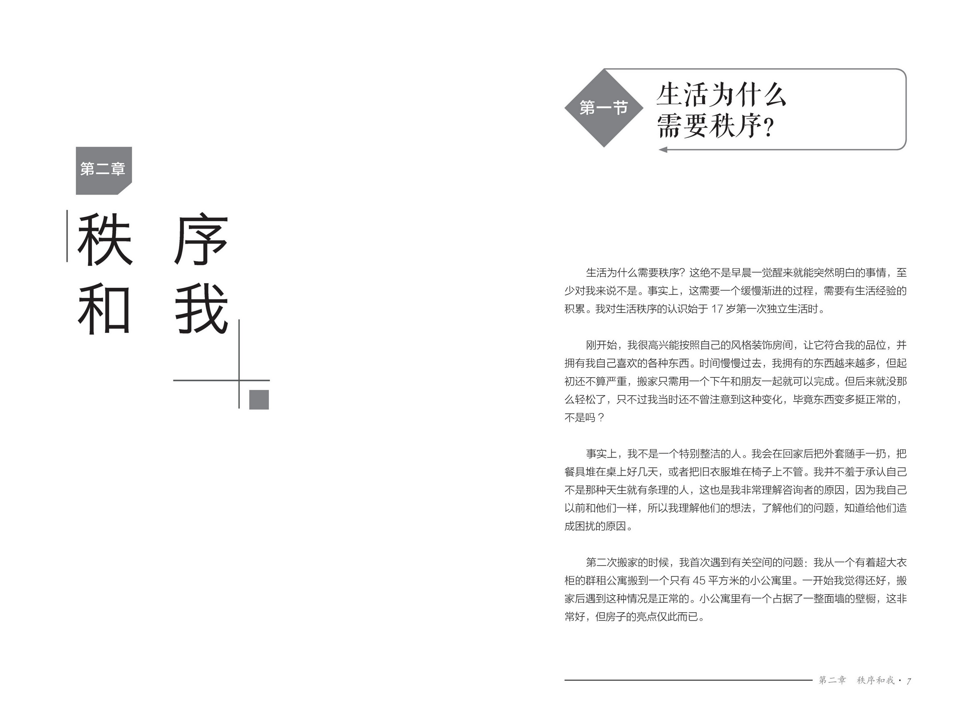 让天生爱干净的人做好整理不难,难的是让天生没有整理细胞的人生活得有规律、有秩序。本书作者艾莉西亚•伊格雷西亚斯坦言自己就是一个进了家门就随手丢外套的人,怎么样,是不是感觉一下子拉近了和作者的距离?但是作者如今成为了一位著名整理师,还独创了一套21天整理法,这个故事是不是很励志?