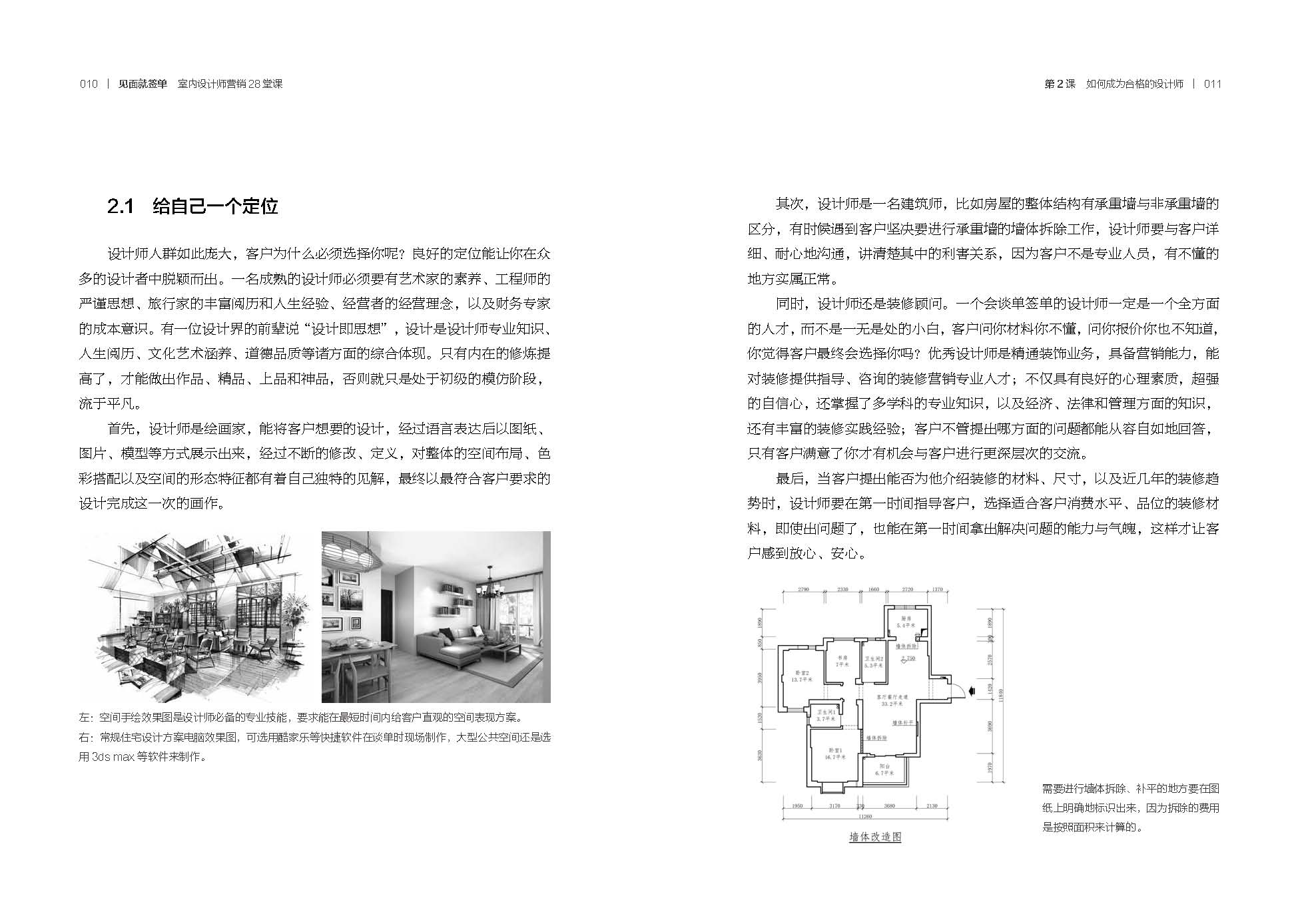 本书从设计师谈单的准备工作、谈单中会出现的问题,以及签单后如何维护客户等方面做了十分细致的讲解,帮助设计师完成从小白到签单大神的过渡。