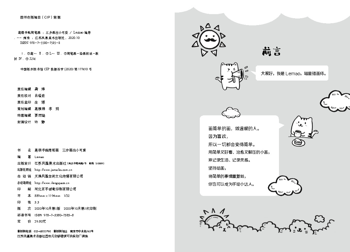 本书是由喵星插画师Lemao(乐猫)倾力打造的一本融教学与玩趣为一体的简笔画教程,不仅可以作为绘画启蒙图书,也适合绘画爱好者与手账爱好者作为素材集来阅读。