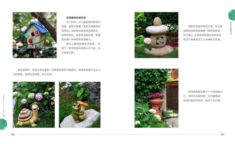 本书主要含括两大部分内容,第一部分介绍简单实用的园艺知识以及花园设计的方法;第二部分是阳台、露台和小庭院的实例分享。该书图文并茂,既具备一定的园艺专业知识,又有丰富的实践性和参考性。