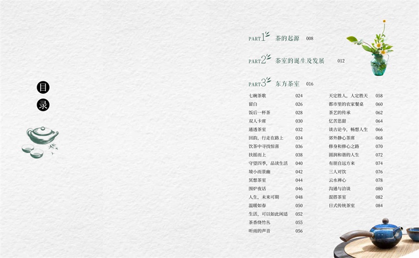 本书版式精美,图文并茂,既有茶文化的历史洗礼,又有现代茶席、茶具、茶花和茶食的完美搭配,古典的、现代的、东方的、西式的,格调丰富,应用尽有,具有很强的实用性。