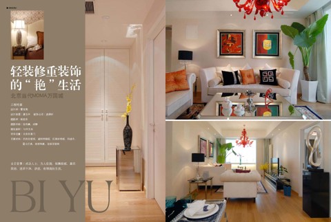 本案选择的是简约酒店式的设计方案,将业主内心追求的“艳”体现在配饰上。轻装修、重装饰在此
