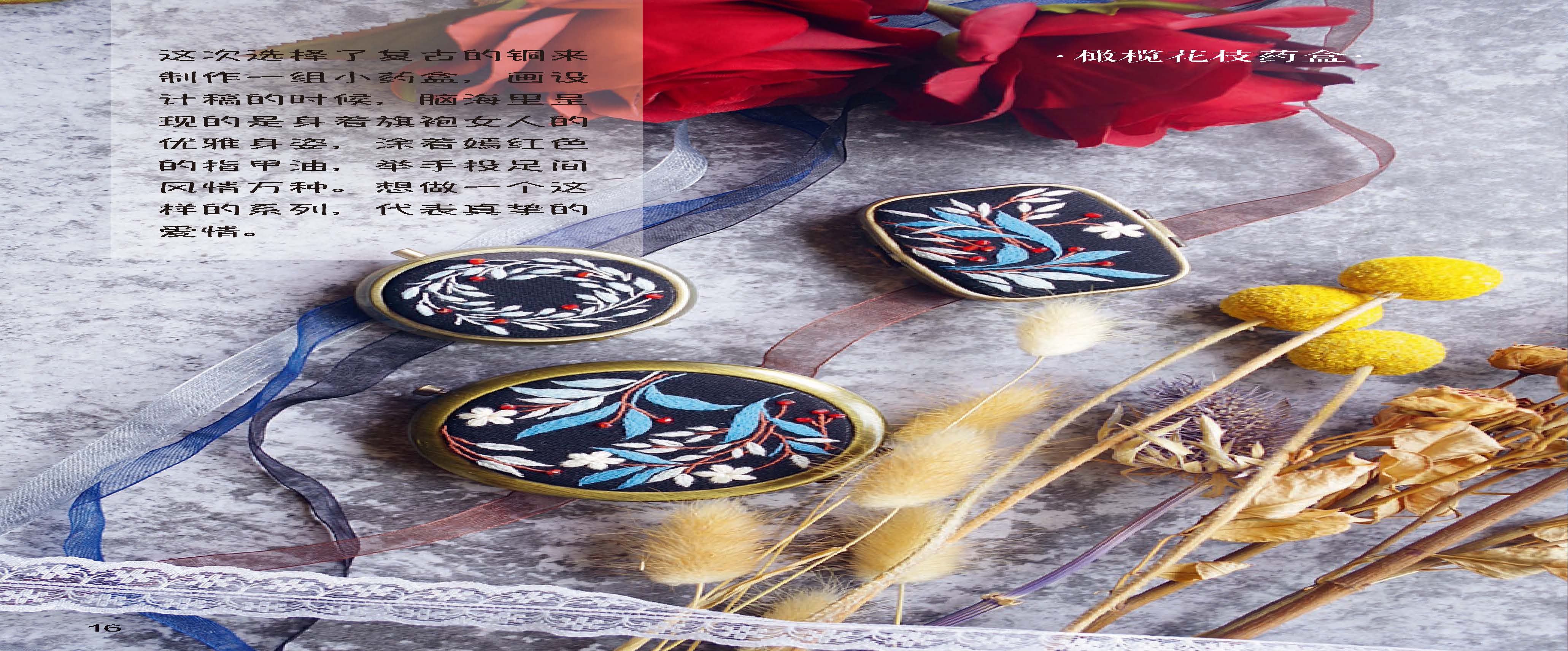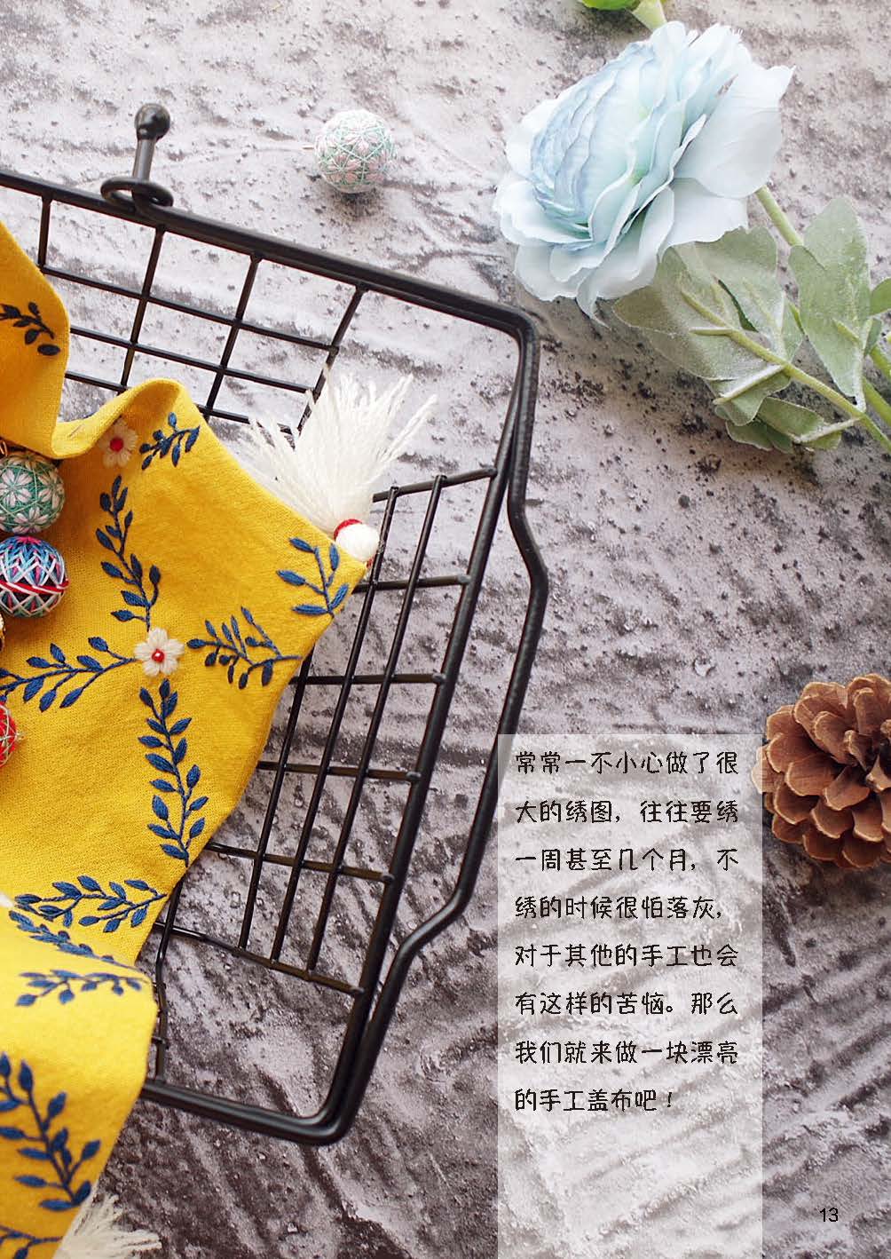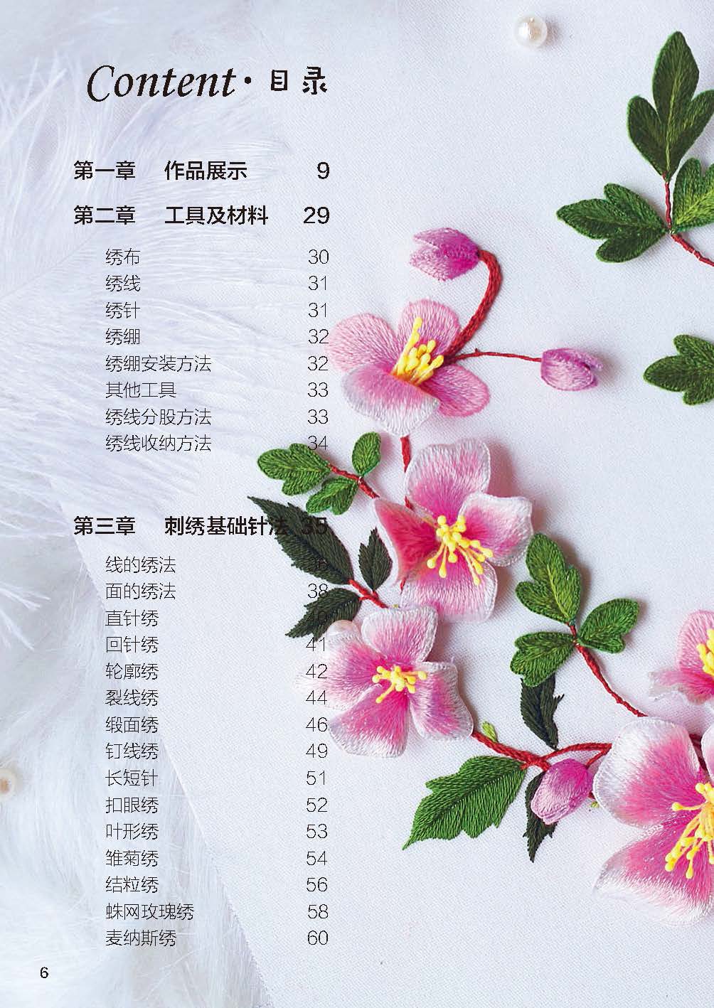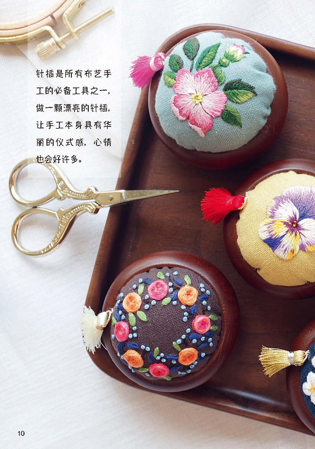本书中所使用的欧绣采用较多的简单针法组合、明快的颜色搭配,可卡通,可浪漫,可优雅,运用不同的材料来展现不同的美感,较易上手。归根结底,无论哪种刺绣,都是好的色彩与合适的质感结合的产物。钻研传统技艺,学习新的工艺,并勇于创新,结合各类手法,扬长避短,将刺绣真正融入生活,从内心到环境去改变,满眼都是喜欢的元素,最终活成我们想要的样子,这就是学习刺绣的意义。本书也会秉承“将刺绣融入生活”这个出发点,希望能够带给大家一些思考。