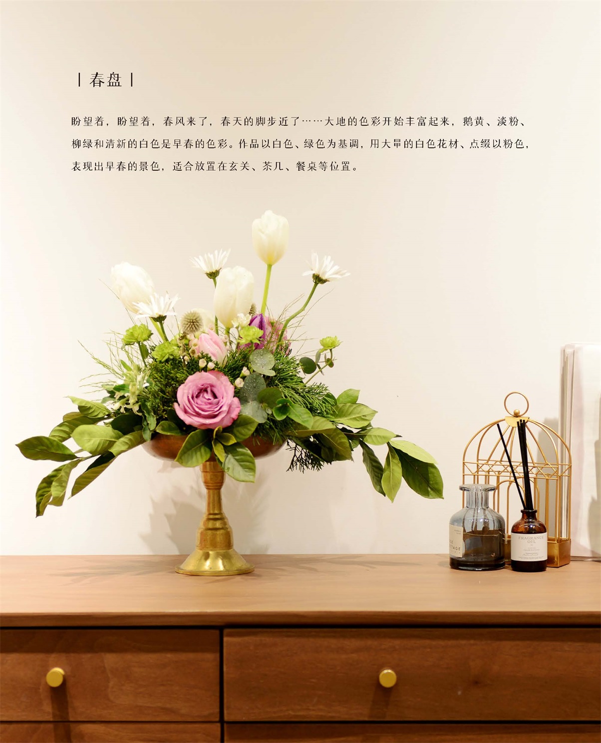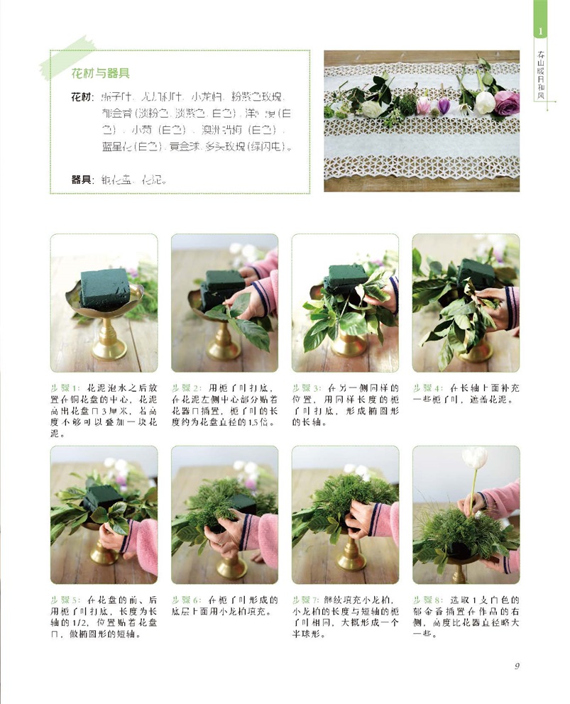 本书以街旁绿化植物、四季常见植物以及鲜花店常见鲜花甚至各色蔬菜等普通的花材物料为材料,制作具有艺术性和观赏性的插花作品,不仅适用于居家摆放,同时也适用于商业场所和文化场所。每个作品都对花材、容器、制作步骤有着详细的解读;并且本书整体内容编排按照应季的花卉、蔬菜、绿植等植物类型,选取每个时令和节日所适合的花材进行布置,既符合植物的时令特点,又迎合了该时令应有的节日气氛。所有案例操作简单,取材方便,容易上手,让读者用较少的时间和精力制作出高雅美丽的花艺作品。在介绍每个作品的制作步骤前,作者都会通过温暖的语言传达出符合时令的气氛语言以及制作的灵感来源,让读者循序渐进地了解花艺概念,喜欢上花艺制作。