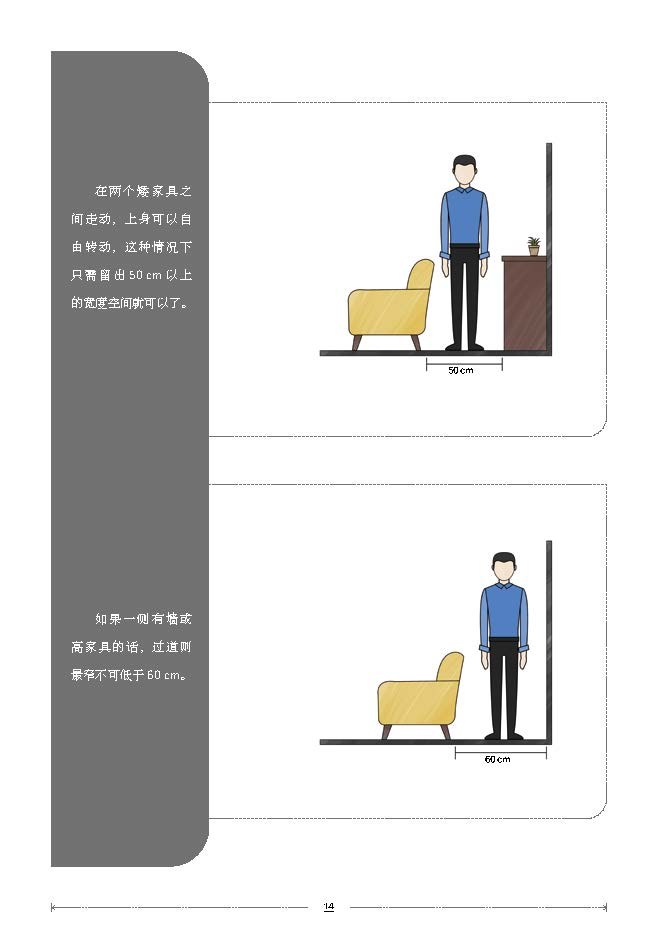 在软装设计中,尺寸数据具有非常重要的参考价值,科学合理的尺寸规划可以使空间更符合人们日常生活的需要,同样可以使得软装元素在空间中的应用更为协调和美观。本书并不是一本标注细部尺寸资料集,而是通过详细分析人的身体尺度、不同部位的尺寸以及行走坐卧等不同行为条件下,对空间尺度的需求,以图解的形式,形象而直观地让读者学会如何进行室内空间设计。