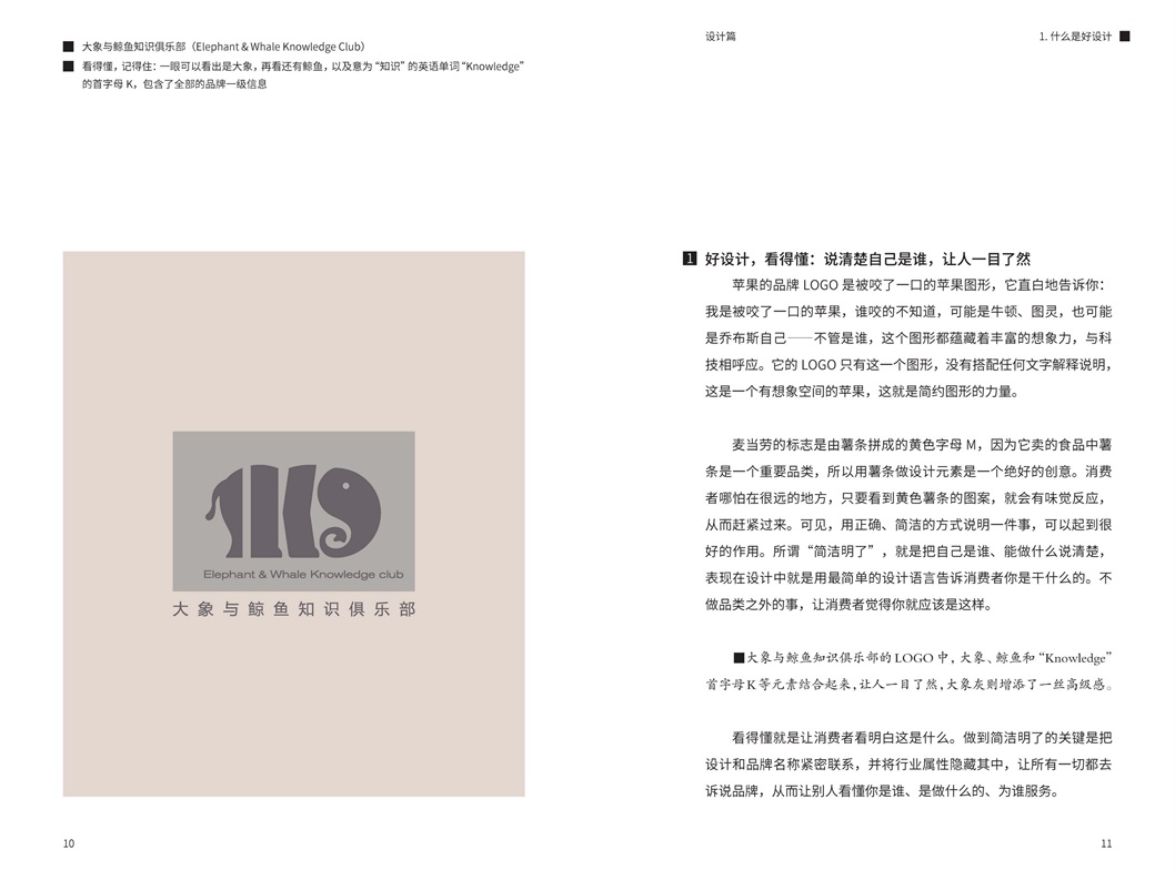 本书分为两大部分:设计与传播。前者主要讲品牌的设计,分别从什么是好设计、怎样设计一个好Logo、品牌怎样从设计到落地等方面介绍设计师如何设计品牌各种视觉物料;后者主要讲品牌的传播,分别从品牌传播三原则、品牌传播中要避免的问题以及品牌创立需要准备的东西等方面入手,介绍品牌传播需要注意的各种问题和宣传销营的技巧等。总体而言,好的设计一定是逻辑先行,辅助传播,落地漂亮的。作者结合自己对当前品牌的设计与营销传播两方面的看法,让本书内容更加实用。
