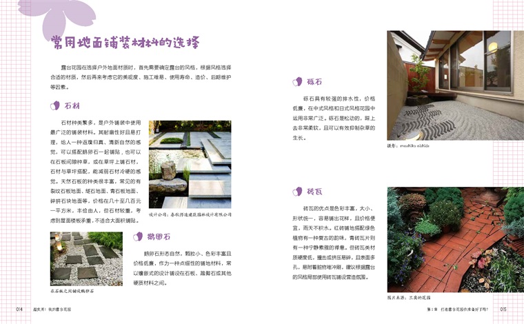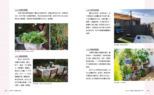 《超实用!我的露台花园》用简单易懂的方式讲解了打造露台花园所需要了解的一些内容,例如露台的功能分区,适合露台种植的植物和养护知识,露台的装饰等,更与读者分享了一些精心挑选的露台花园打造案例,同时配以精美的图片和详细的文字说明,与读者分享露台花园的打造经验,具有很强的实用性。这些案例都是由园艺达人提供的,这些园艺达人有丰富的园艺经验,这些经验都是在打造自家露台花园的过程中摸索总结而来,并将这些经验毫无保留的分享给读者,让您了如何打造露台花园及花园的后期维护。本书图片精美,既赏心悦目又可以带给读者真实有用的参考。