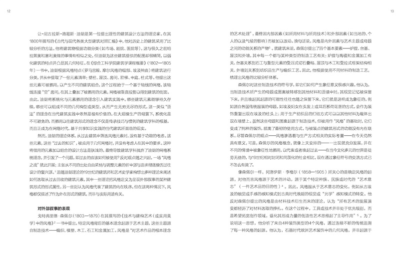 《风格的功能》通过展现不同的建筑形式,介绍了当代建筑风格功能的组成要素。人们常认为风格仅仅是建筑外观表现,可以随意修改,但是作者却不这样认为。作者将建筑比作一个错综复杂的网络系统,其中单个建筑是从为日常生活的不同活动而设计的其他建筑中汲取的概念的产物,这些不同的概念进一步创造出相互关联而又各不相同的独立建筑。建筑风格主要在于体现建筑的平面布局、形态构成、艺术处理和手法运用等方面所显示的意境。