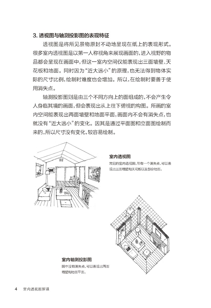 300余幅透视草图和绘制步骤分解图,讲解室内透视基本法。