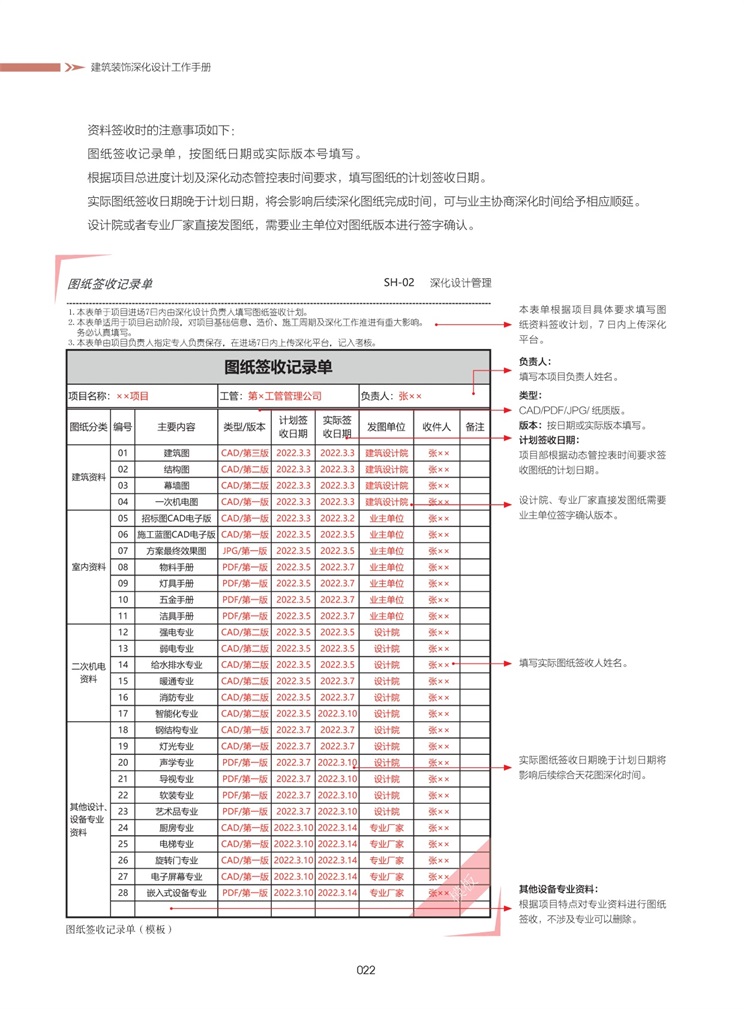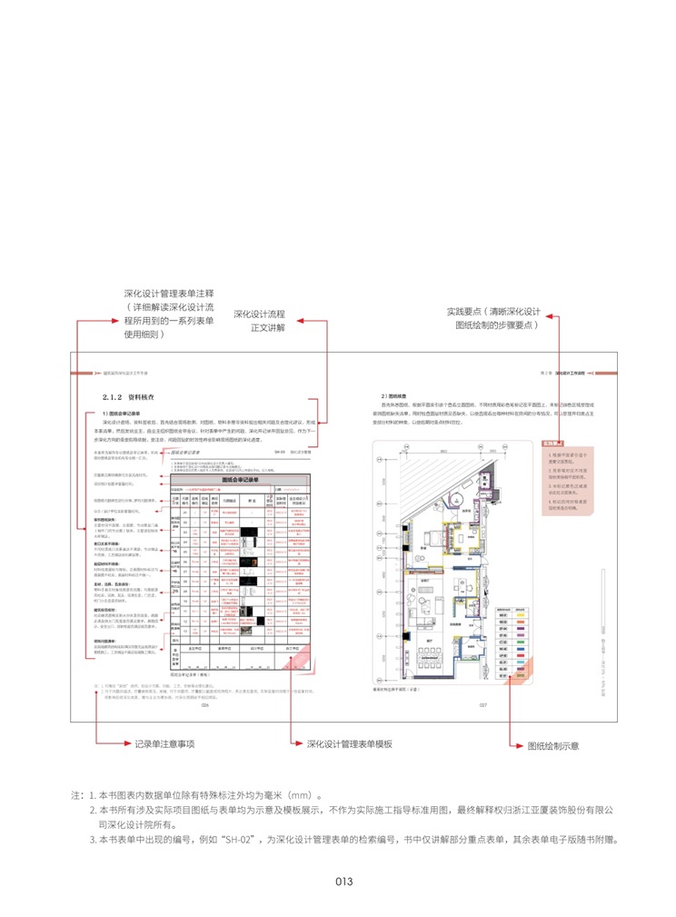 本手册系统阐述了装饰深化设计工作的标准流程,总结归纳深化设计在装饰工程全过程中的六项关键阶段,贯穿项目全周期。根据大量深化设计项目的经验积累,沉淀深化设计成果与数据,通过工具表单、标准样图及案例说明来详细讲解项目各阶段每一个深化标准动作,指导一线深化设计人员把深化设计做好;同时协助项目深化负责人进行动态管控,共同把深化设计做强。
