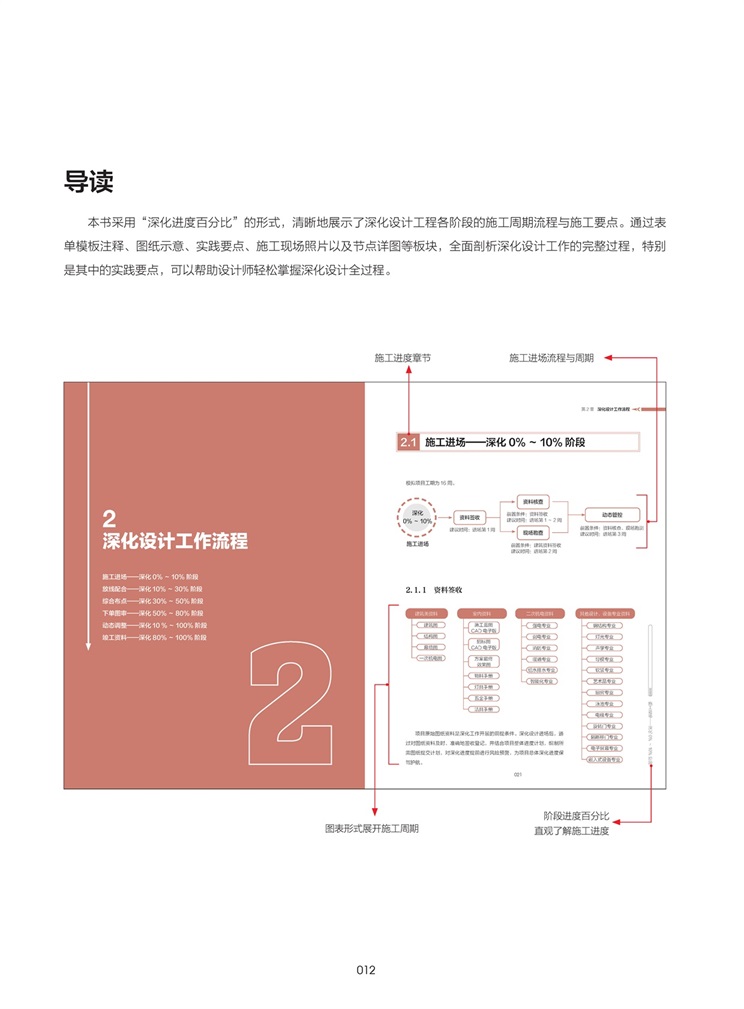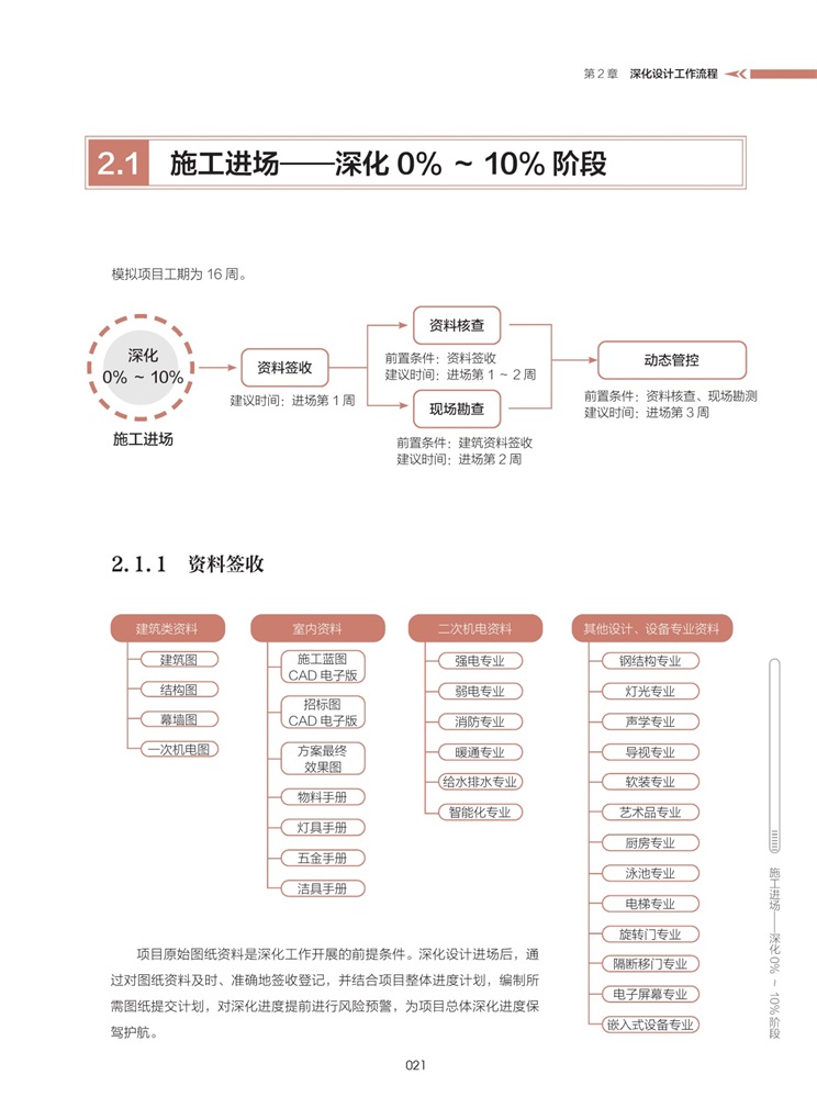 5.直击施工进场、放线配合、综合布点、下单图审、动态调整和竣工资料六大管控节点,规范深化设计工作流程,归纳深化设计质量通病与防范,轻松掌握深化施工全流程。