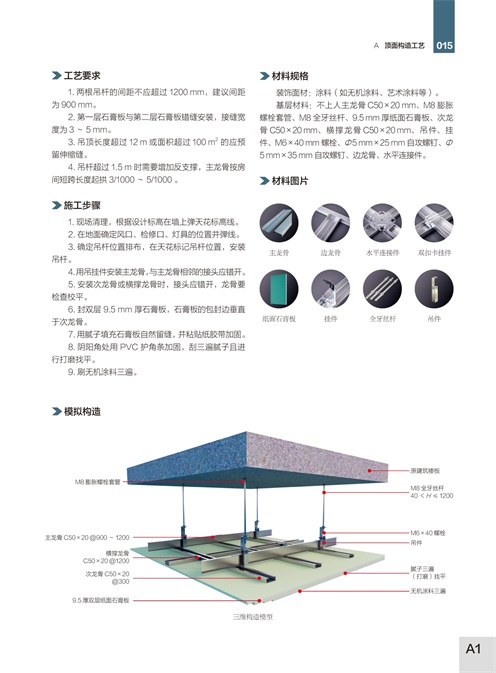 A1.3 上人轻钢龙骨石膏板吊顶构造 016