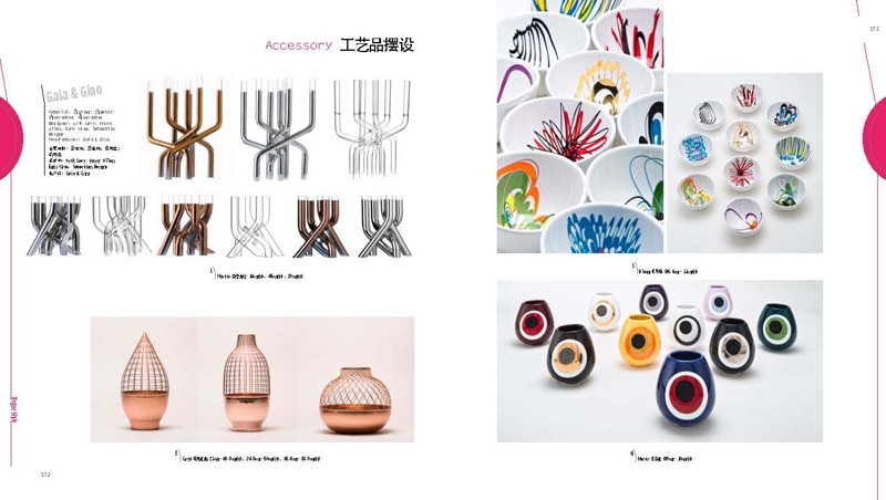 本书收录近两年国内外精美的软装配饰作品,如布艺、工艺品摆设、灯具、餐具、家具等,并按其特色划分为欧式、地中海风格、东方、简约、时尚和自然等六种风格。书中还详细列出每项作品的材质和规格,是一本非常实用的软装设计师案头工具书。