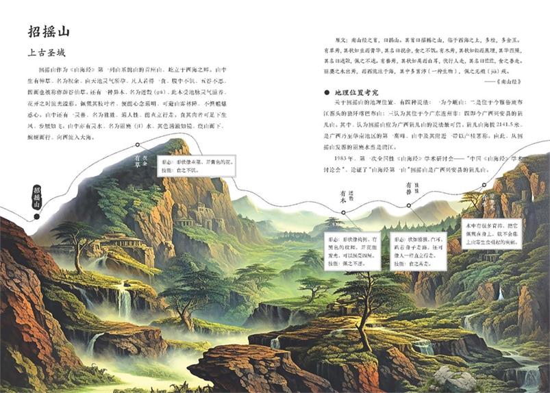 它精选五章经典内容,以“图鉴”形式梳理仙山、神兽、方国等核心元素,既保留原文的古朴神韵,又用现代视角解读背后的文化隐喻——西王母的威严、共工触山的悲壮、扶桑与若木的日月神话,所有这些散落在古籍中的光怪陆离,都化作可触可感的生动图景。