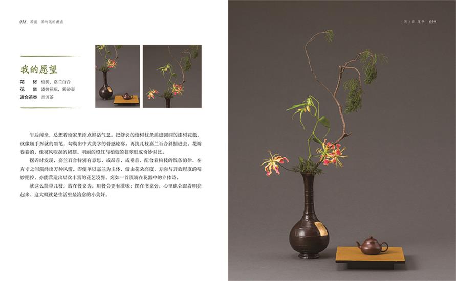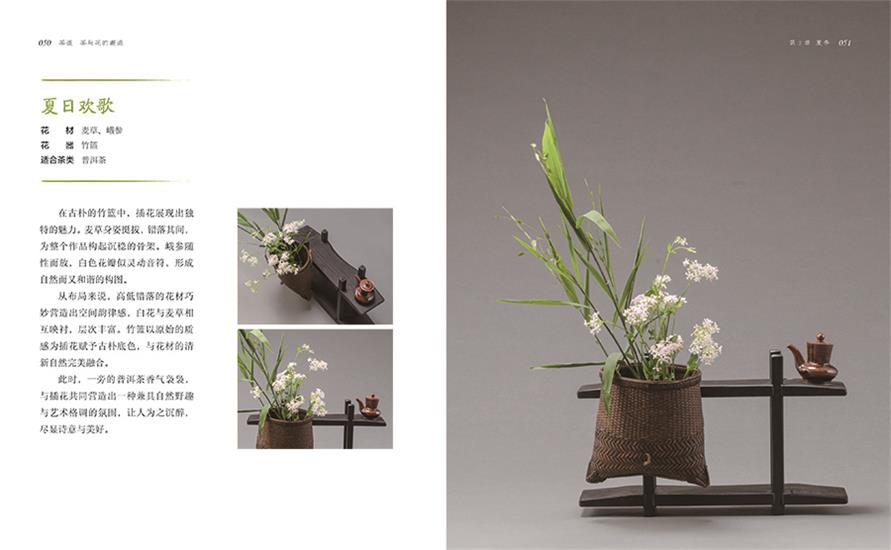 全书内容含括茶花的特点和美学特征、茶道插花的基本原则等,根据春、夏、秋、冬四个季节进行划分,收录了近百个茶席插花的作品。每个作品里面均收录有花材、花器以及设计特点等文字,方便读者在品茶的同时,选择合适的器具,并由此美化我们的生活空间,提升大众的艺术品位。
