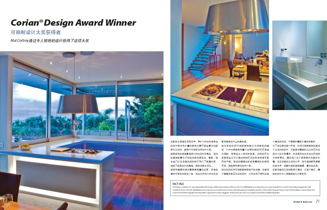 《厨房与卫浴》(Kitchens & Bathrooms)是中国首本高端时尚厨卫杂志。我们携手住房工业协会(HIA)、国际室内设计师及建筑师联盟(IFI)、国际工业设计师联合会(ICSID)等多家极具影响力的专业机构深度合作,向全球读者展示国际先进的厨卫设计理念、顶级室内设计作品及前沿产品信息。杂志着眼于产品设计、空间布局合理化、灯光营造、材料应用等方面,用极具视觉冲击力的照片,诠释最新经典案例。我们秉持“设计生活,审美至上”的原则,坚持专业视角,提供最新国际设计,让设计美好生活.