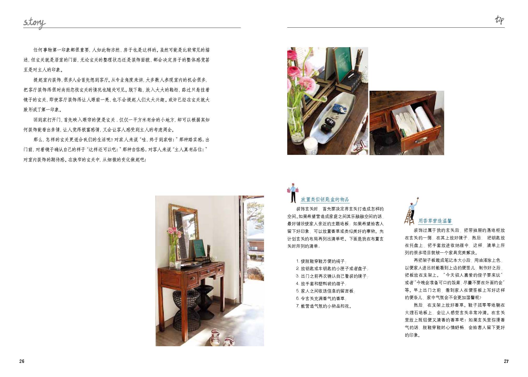 本书详细讲解了简单易行而恰到好处的点缀装饰和储纳方法,收录了作者许许多多 独到的小创意和小建议,这些设计师头脑的闪光弥散在玄关、客厅、厨房、书房、 卧室、衣帽间、浴室、工作室、庭院和阁楼等房间布局的每个地方。充分体现了设计师节俭不奢华,追求品质力求完美的理念。随着四季的变化,简简单单一个小小的调整就可以将自己的居室打扮得与季节相符,给每天的生活带来愉悦的享受。