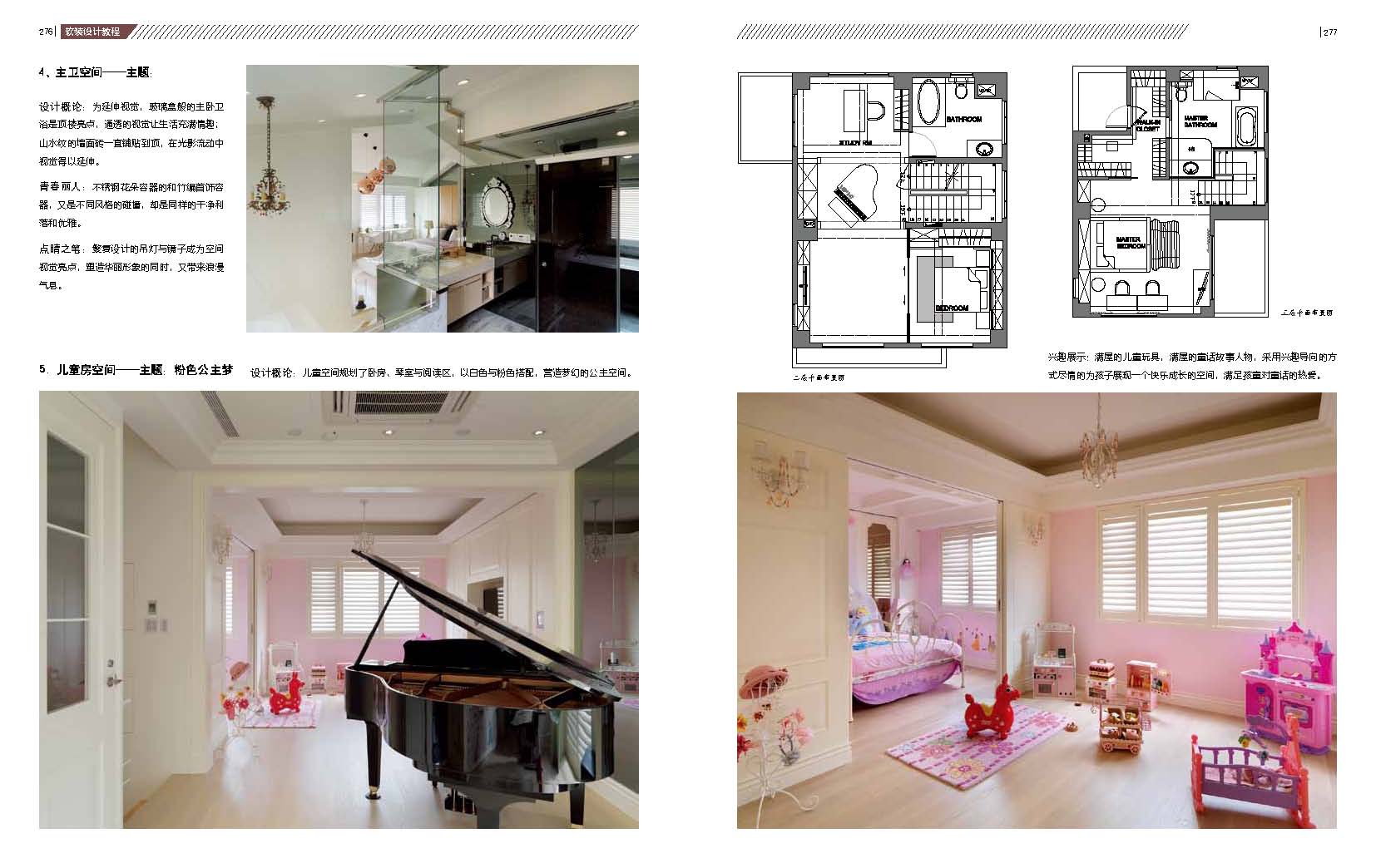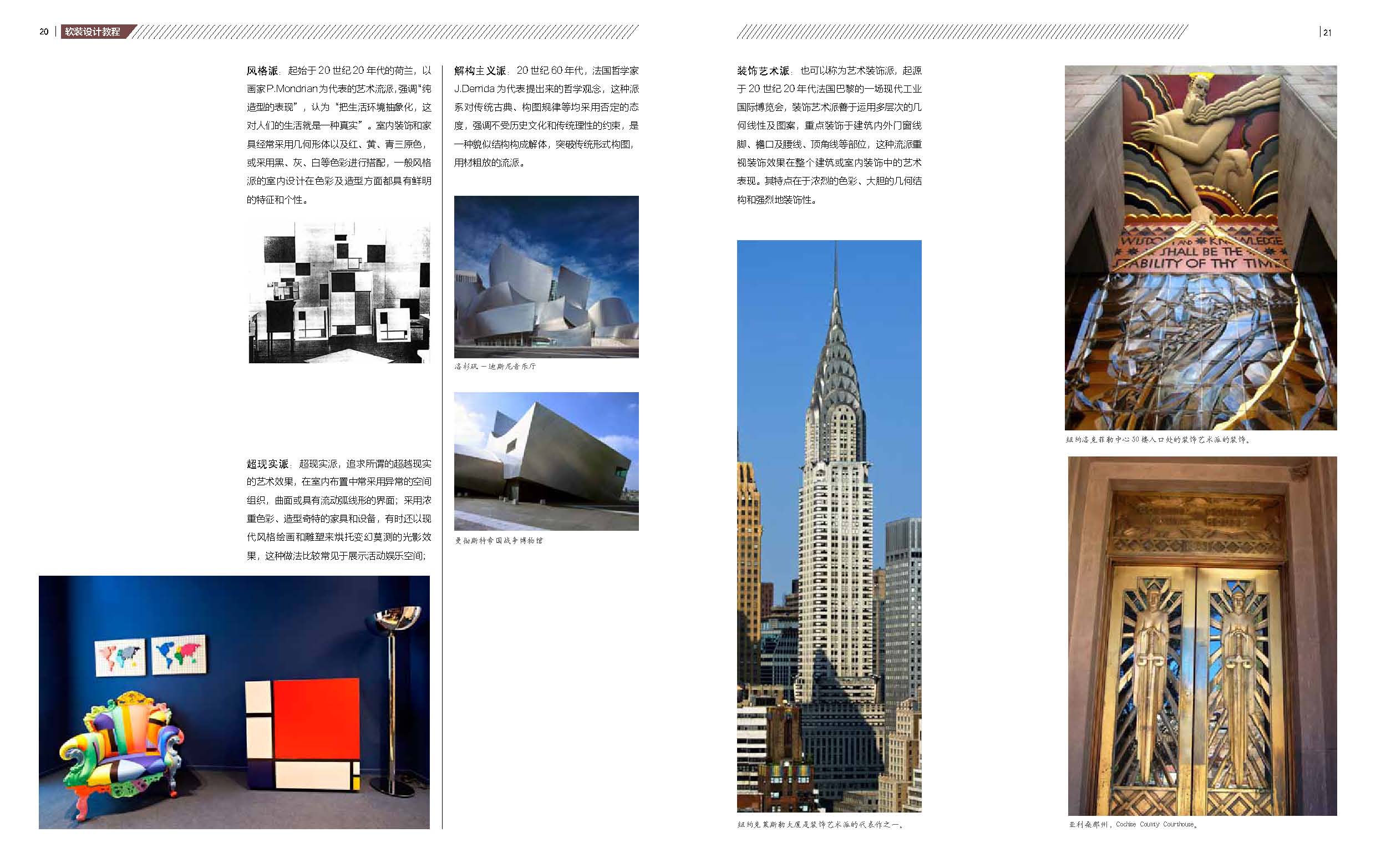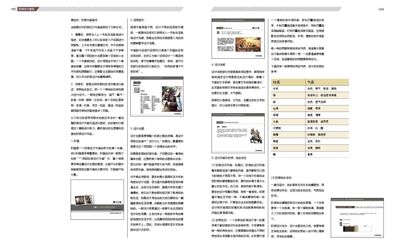 2.软装元素介绍:相对于先前出版过的软装类书籍,《教程》中软装元素介绍更为丰富,且详细分析了各种元素在各个空间、各种风格中的应用,内容更充实实用。