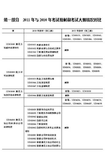 第一部 2011年与2010年考试教材和考试大纲情况对比