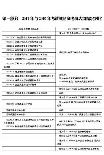 第一部 2011年与2010年考试教材和考试大纲情况对比