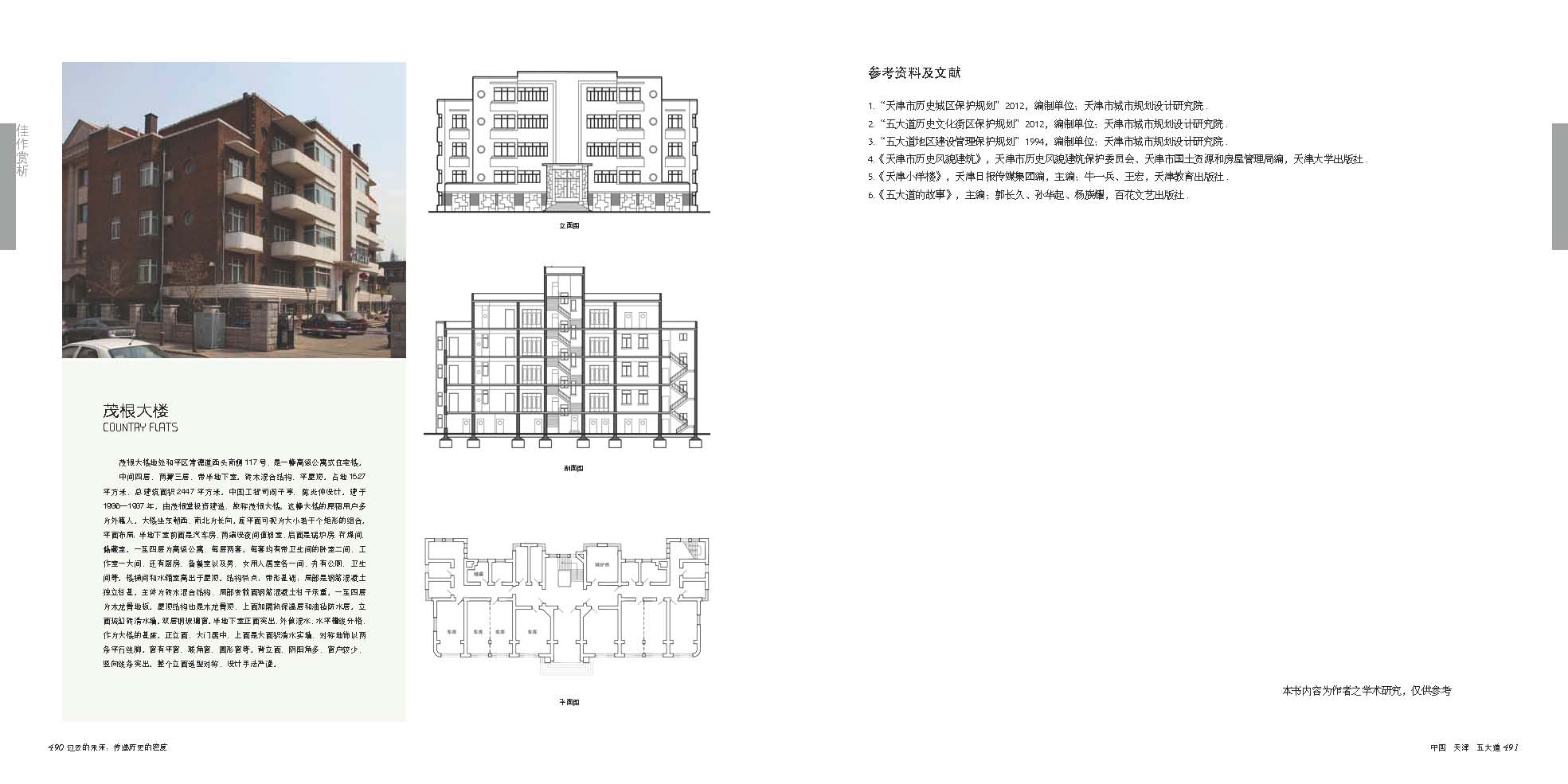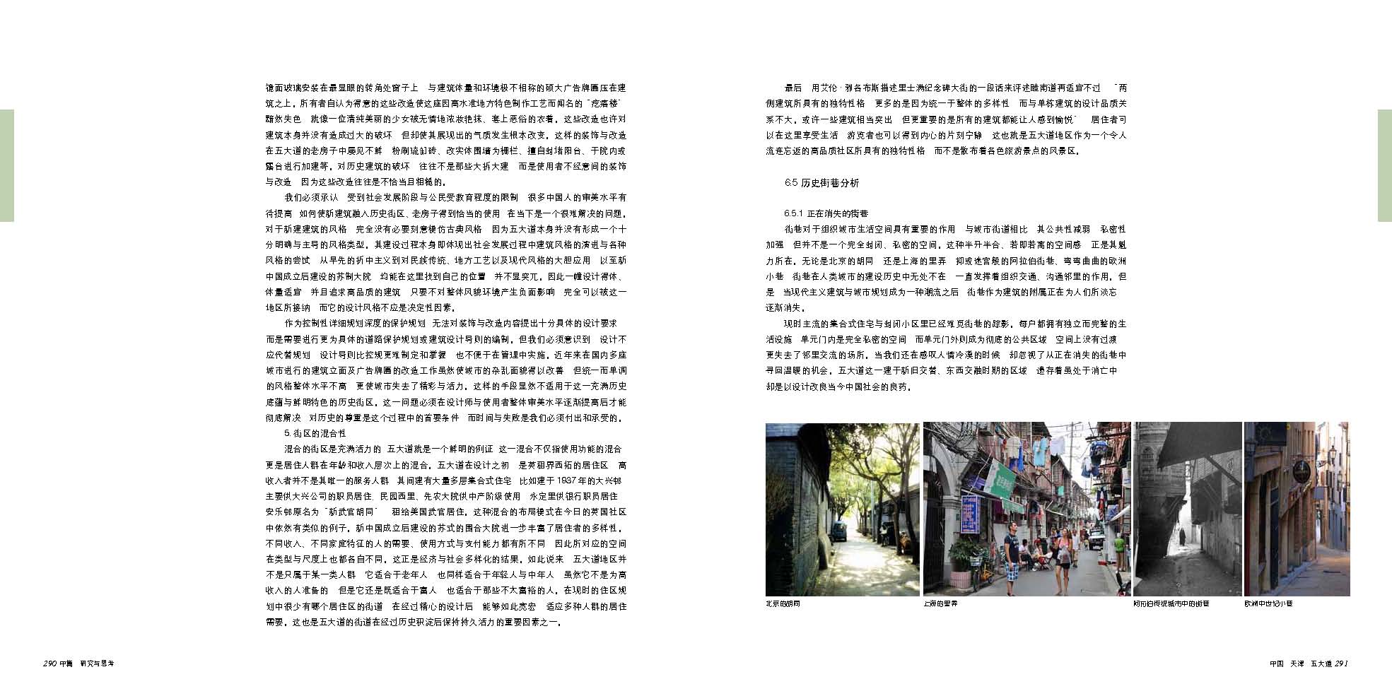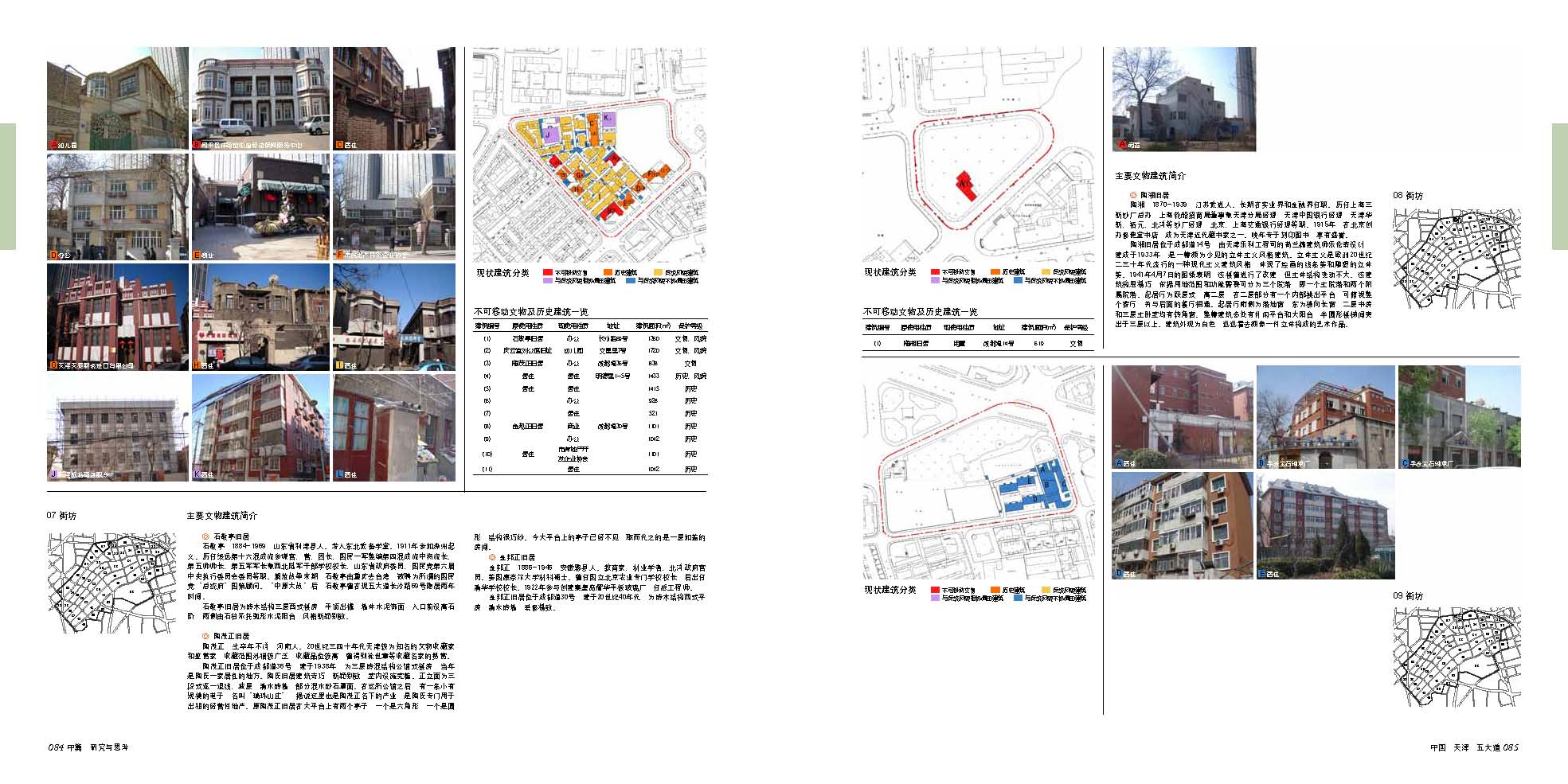 五大道是天津市十四个历史文化街区中规模最大、保存最完好的街区。这片增经的英租界高档居住区延续了英国城镇体系的一系列做法,邻里花园、学校、公共设施、体育场地分散设置在居住街区内,可亲可触,体现了亲近邻里的设计初衷。想要继续维护这种氛围,更加深刻地理解五大道地区在过去上百年间发展出了哪些因素、格局和特点从而造就了这种生活品质是必不可少的。五大道历史上一些约定俗成的关系结构和空间特点集中反映在建筑类型、街廓肌理、街道与街巷三个方面,这也是《中国•天津•五大道:历史文化街区保护与更新规划研究》(简称《中国•五大道》)能够在五大道的保护和更新工作中激发理性的设计思维、具有一定参阅价值的意义所在。当改造和重建行为发生时,此类研究尤为重要。