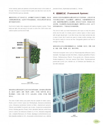 不同于一般只展示立体绿化案例的图册书籍,《垂直绿化》更像一本具有扫盲性、实践指导性意义的形式活泼、语言生动的“教科书”,它展示了大量专业知识与著名设计师的实践经验。书中开篇即以国内垂直绿化先行者赵聆汐女士传授经验与心得为综述篇章,系统而全面地展示垂直绿化的相关知识并传授宝贵的植物配置经验。其后根据常见的种植技术分类,详述了50多个国内外先进而优秀的垂直绿化案例。案例类型涵盖综合型建筑表皮、住宅表皮、门庭、花架、棚架、栏杆、室内墙面等, 图纸内容清晰,设计信息详尽,更有介绍垂直绿化系统的组配技巧、植物配置的经验与技巧。该书最难能可贵的地方在于其案例紧密关联可持续发展战略,呈现最巧妙的循环回路绿化装置和生态面板装置,具有极高的可观性。