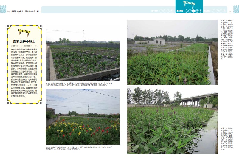第二部分“水生植物在水体净化与生态修复中的应用”,细分为“湖滨河岸生态带”、“潜流碎石基质人工湿地”、“表面流土壤基质人工湿地”和“生态浮岛”4 个应用领域。