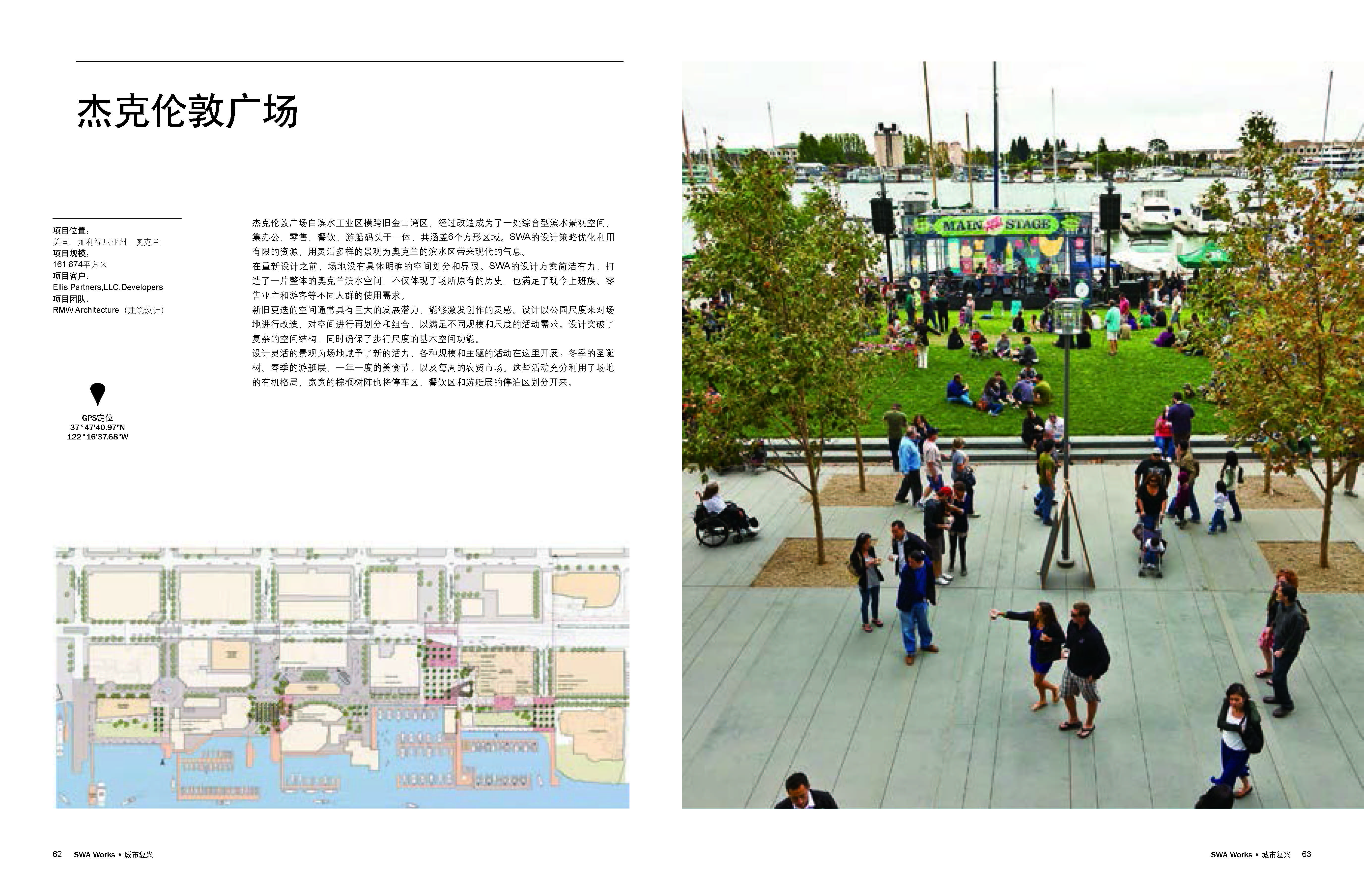 《SWA作品集》分为三部分。第一部分为序言部分,由SWA总裁撰写技术性序言,阐述从业经历及体会以及对未来愿景的展望,第二部分为项目案例展示,选取50个具有代表性的景观设计、规划类案例,围绕四个范畴展开——城市复兴、创意园区、生活方式、适应性策略;图文结合,融入技术类图纸。第三部分为后记。