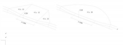缘石坡道现通用三面坡及扇面坡,坡道下口高出车行道地面高差不得大于20mm。见图