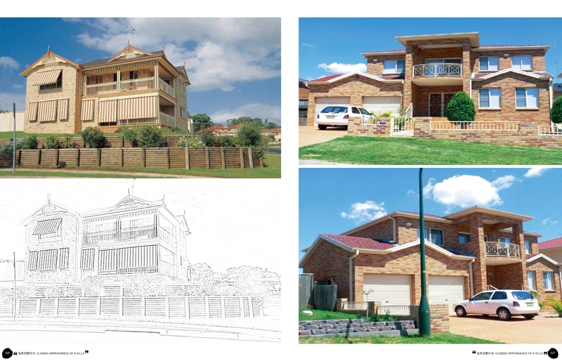 本书收录了国外和国内的别墅图样约800例,除多角度外观图的直接展示外,有些还配附了各楼层的平面设计图,希望尽量给读者展示一个较为完整的效果。这些别墅实例,既有简洁大气、集各种建筑精华于一身的北美风格别墅,又有尽显豪华、富有古典神韵的欧洲风格别墅,也有外观色彩亮丽、造型美观的澳大利亚风格别墅,还有体现中西文化结合的本土别墅等。