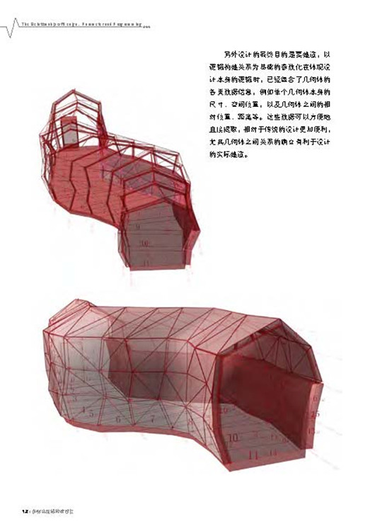 《参数化逻辑构建过程》一方面强调程序编写的核心技术,同时强调实际的运用,不断的将学习者从传统的三维模型直接构建的方法中引入到基于数据管理的编程思维构建模型和进行设计分析的方法上。