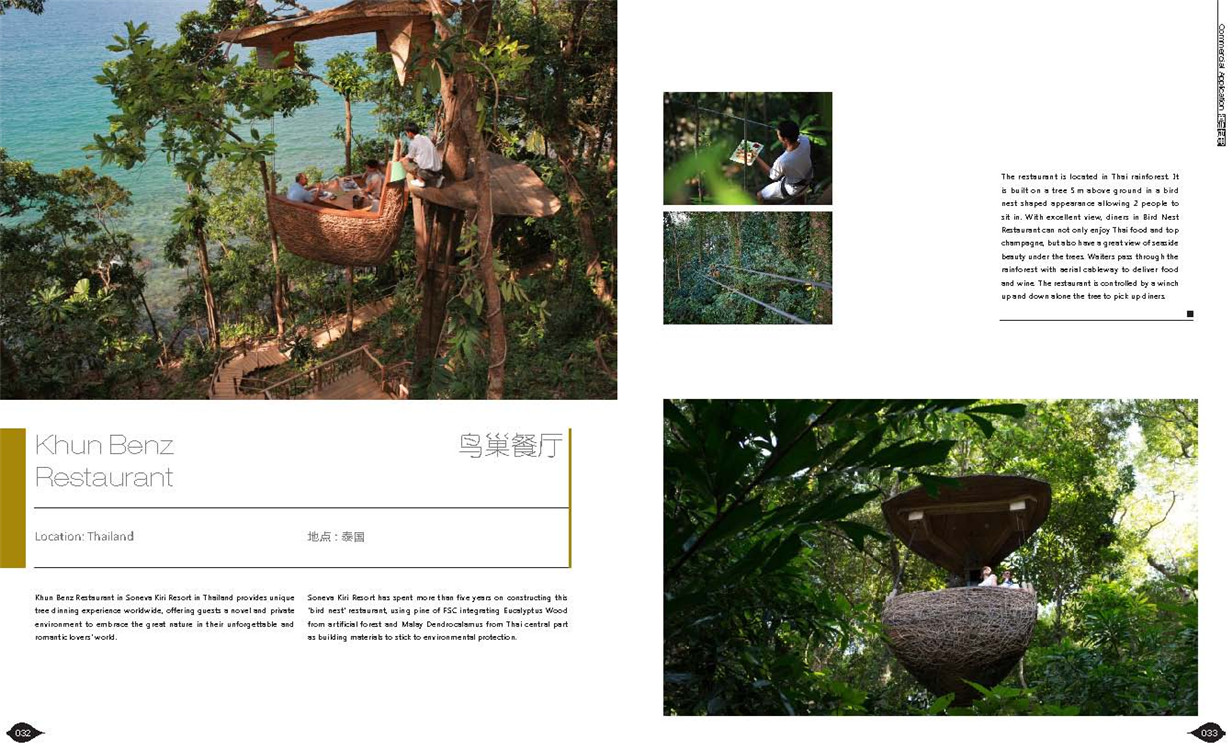 本书通过对国外优秀案例和项目的展示,为国内的设计师和读者们带来崭新的创作思路和广阔的设计灵感。本书按照树屋的功能性分为四大章节:商业应用、居住设计、游乐观光和未来设计。整书以精美图片为主,配以内容充实而精炼的文字叙述,为读者提供参考。
