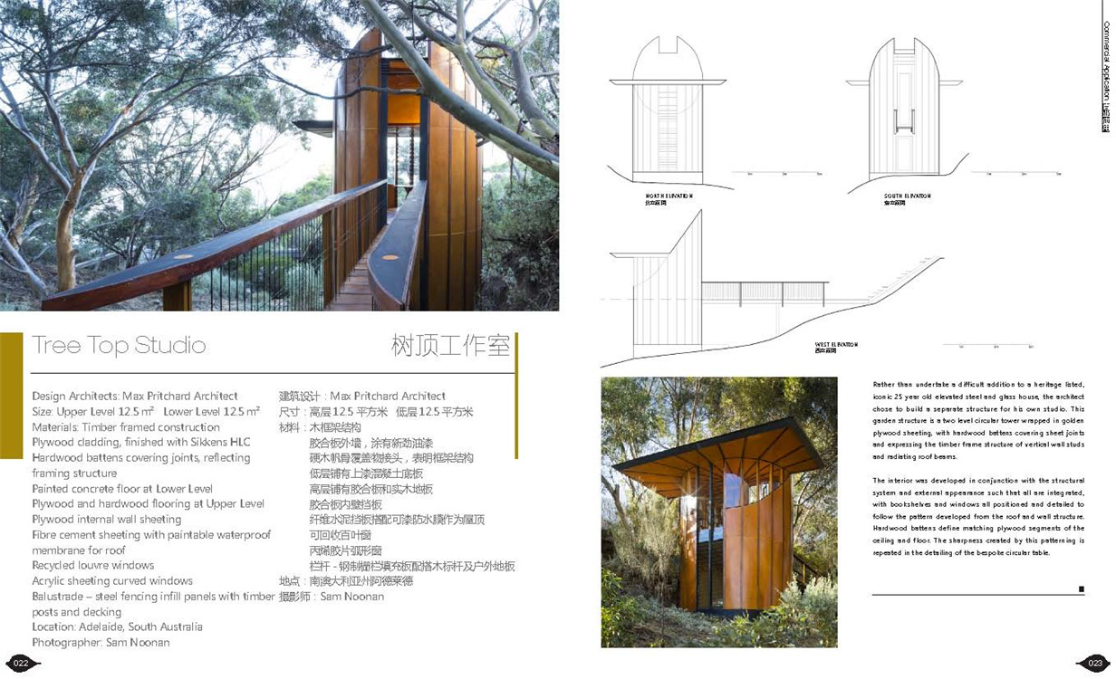 树屋在国外是很多父母为自己的孩子建造的一个童年时期可以住和玩的屋子,但是在国内,很少有家庭有这个条件和想法,而本书就为读者提供了一个个独具创意的树屋设计;从商业应用、居住设计、游乐观光和未来设计,按照不同的功能划分,全面的介绍了树屋的整个设计工程和创意思维。希望其中必有你喜欢和需要的,或者从中可以带来更多的设计灵感。而本书的亮点在于: