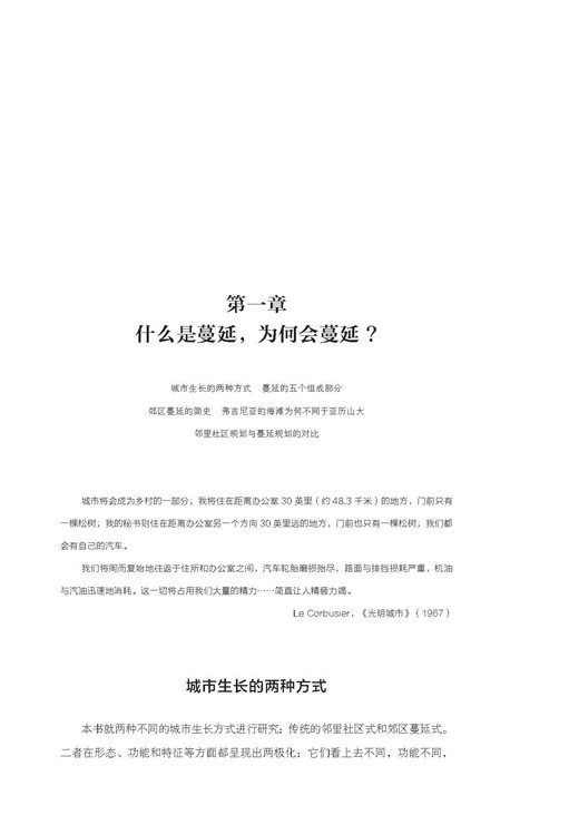 本书是上世纪城市规划理论的经典著作,介绍了当时北美兴起的一场运动:停止郊区蔓延,取缔以汽车交通为基础的定居模式,取而代之以更加传统的规划法则。本书介绍了这样一种城市规划模式:既可以容纳蔓延,又能为不同类型、不同收入的家庭提供充满吸引力的生活选择。通过设计手段来清理我们自己所造成的混乱,进而再次创造出人性化的居住场所。