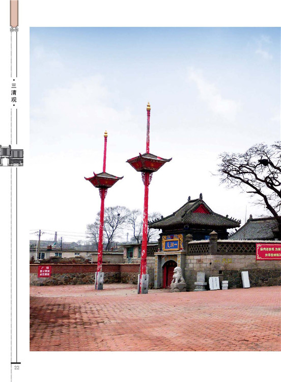 三清观毗邻城子坦镇的春满街。春满街北面有一片海滩,往前不远处就是碧流河汇入黄海的入海口,涨潮时,这里流动的是海水,退潮时就是河水。春满街(图 1)旧称鱼市街,是一条融合着辽南和胶东传统民居特点的老街,至今仍保留着清末民初当地民居的建筑风格与空间布局,是辽宁地区目前保存最为完好,具有鲜明的历史特色、浓郁的文化风情和较高的艺术价值的街区。