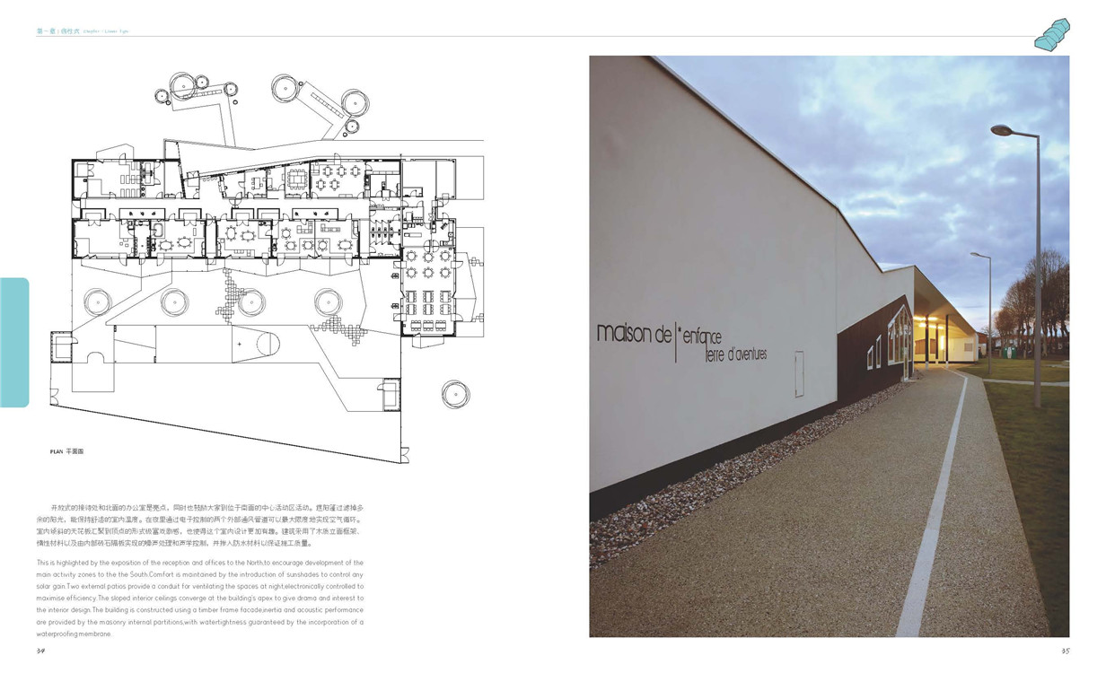 收录了33个国外最新幼儿园案例,每一个案例都有详细的分析和精美的照片。从建筑的形式上分为四大类:线性式、集中式、院落式和集中式。展现了最新国际幼儿园的新的设计趋势。给幼儿园的设计者、经营者和教育者新的启发与思考。